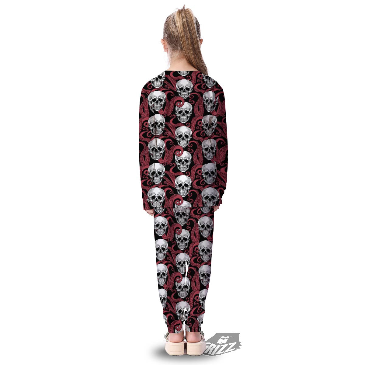 Octopus Skull Red Print Pattern Kid's Pajamas