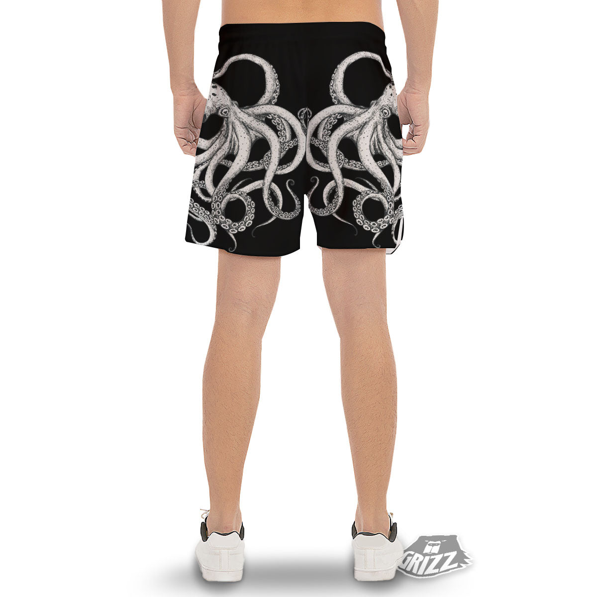 Octopus Tentacles White And Black Print Men's Gym Shorts
