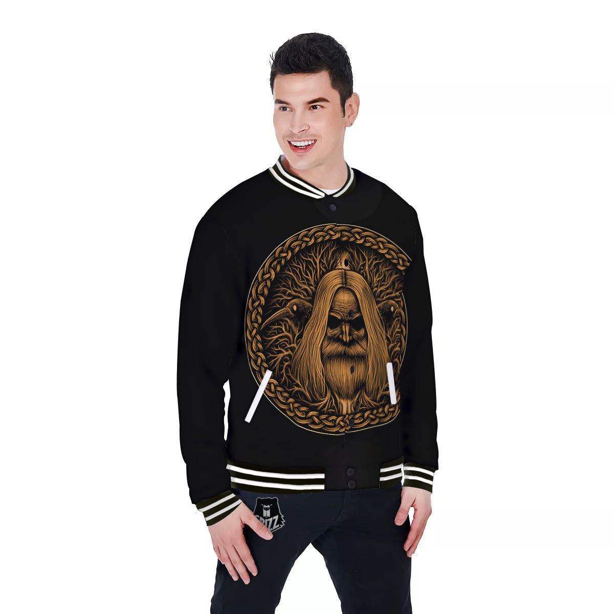 Odin Gold With Muninn And Huginn Print Baseball Jacket