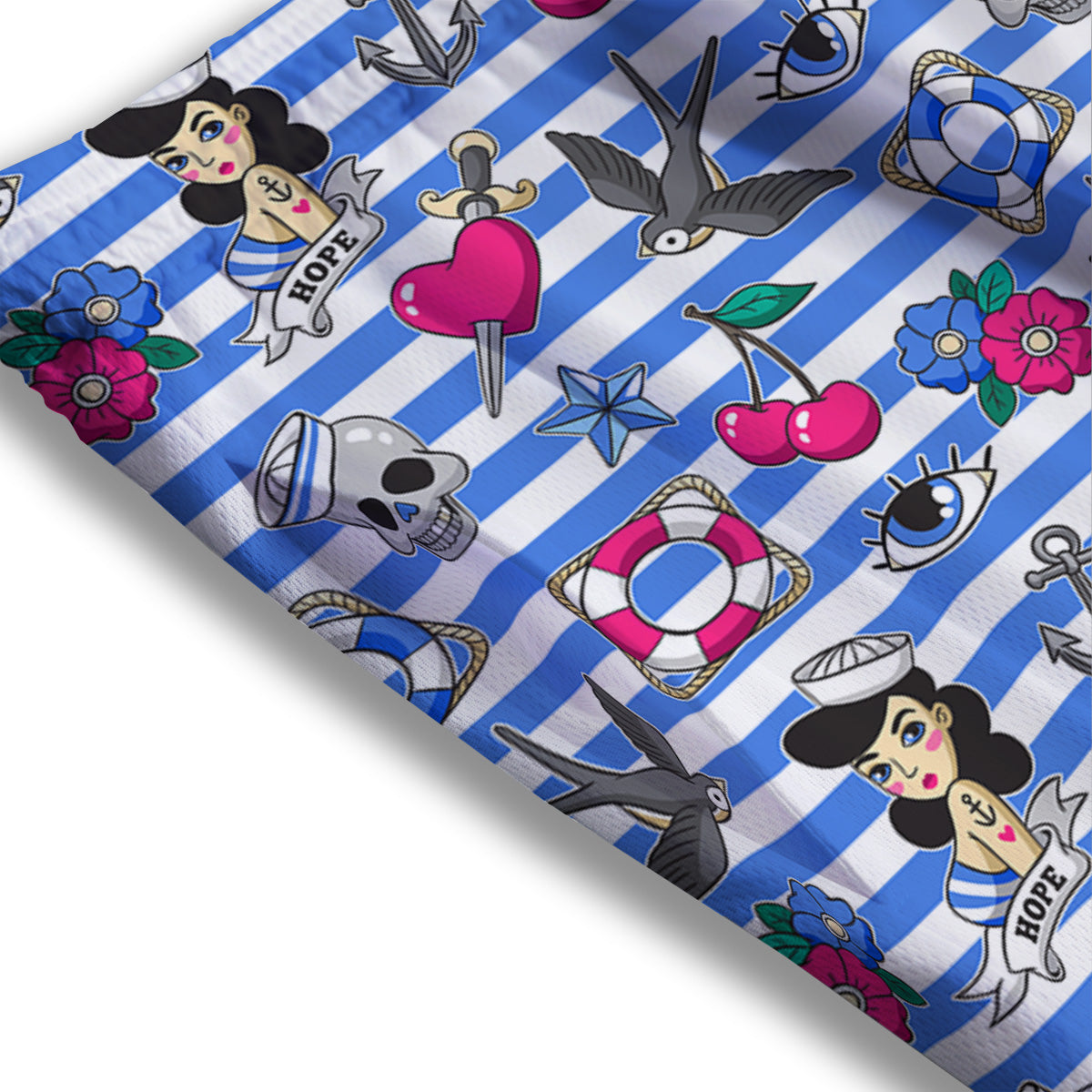 Old School Sailor Striped Print Pattern Mesh Shorts
