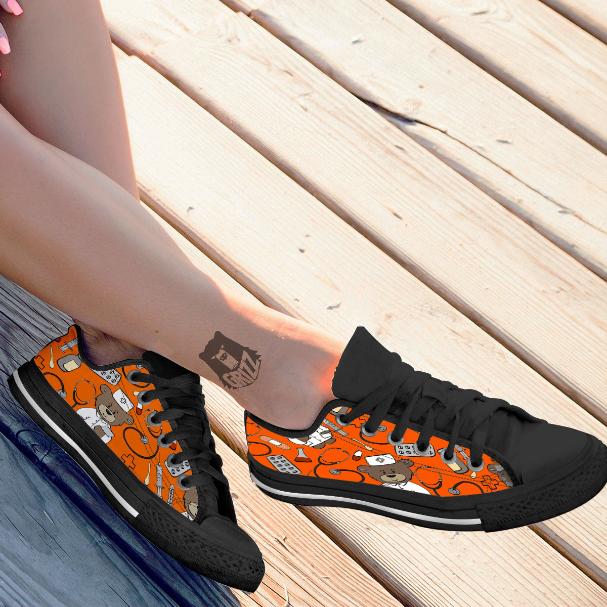 Orange Teddy Bear Nurse Black Low Top Shoes