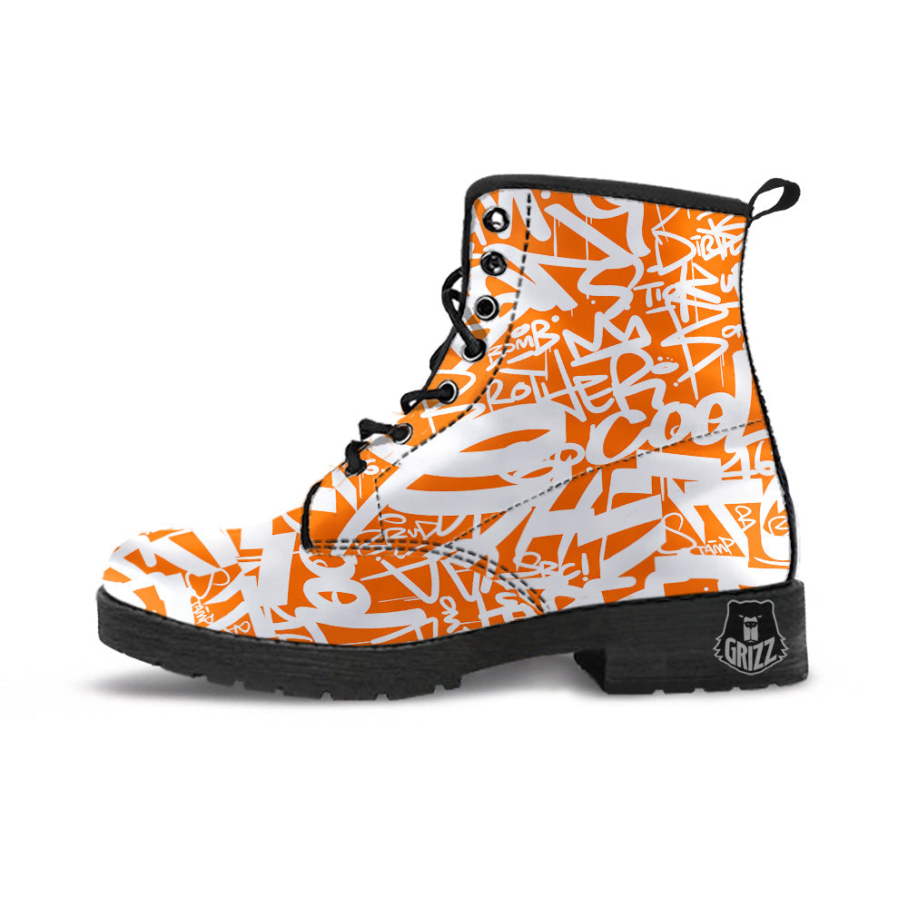 Looking for a unique Boots? Check out our Orange Urban Graffiti Text Print Pattern Leather Boots at Grizzshopping. Our Boots are handcrafted to the highest quality standards that custom made for you