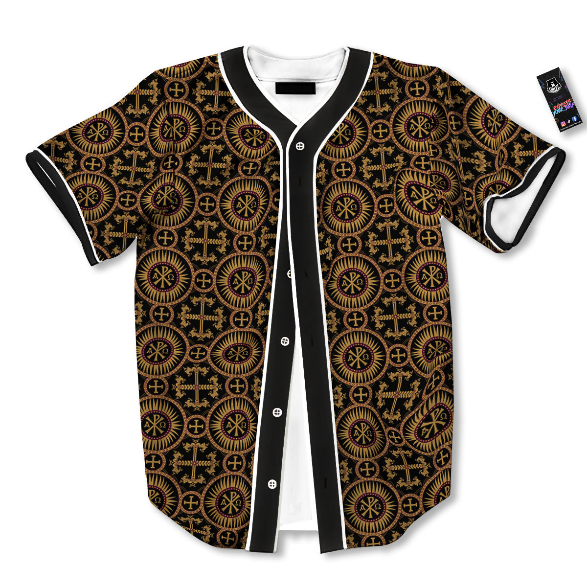 Orthodox Black And Gold Print Pattern Baseball Jersey