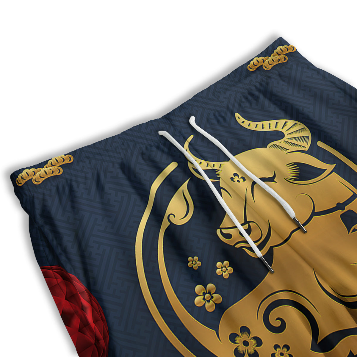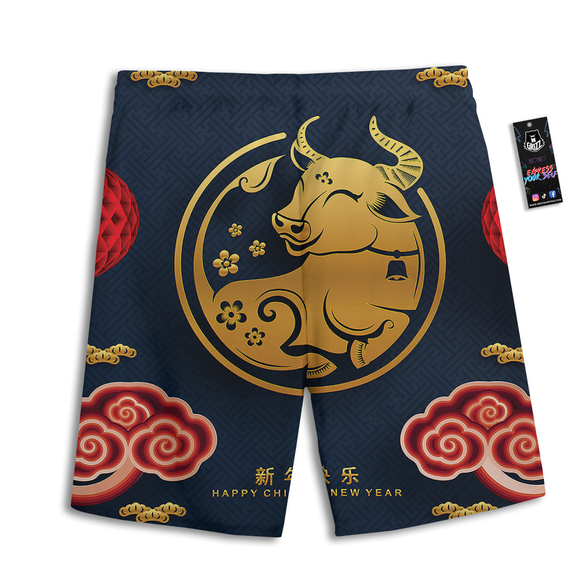 Ox Zodiac Chinese Cute Print Men's Athletic Shorts
