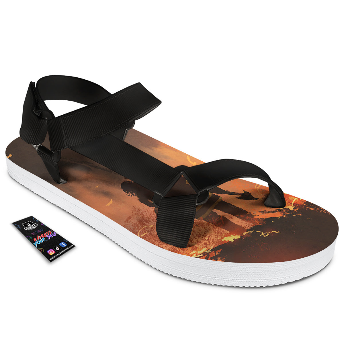 Painting Brave Firefighter Print Black Open Toe Sandals
