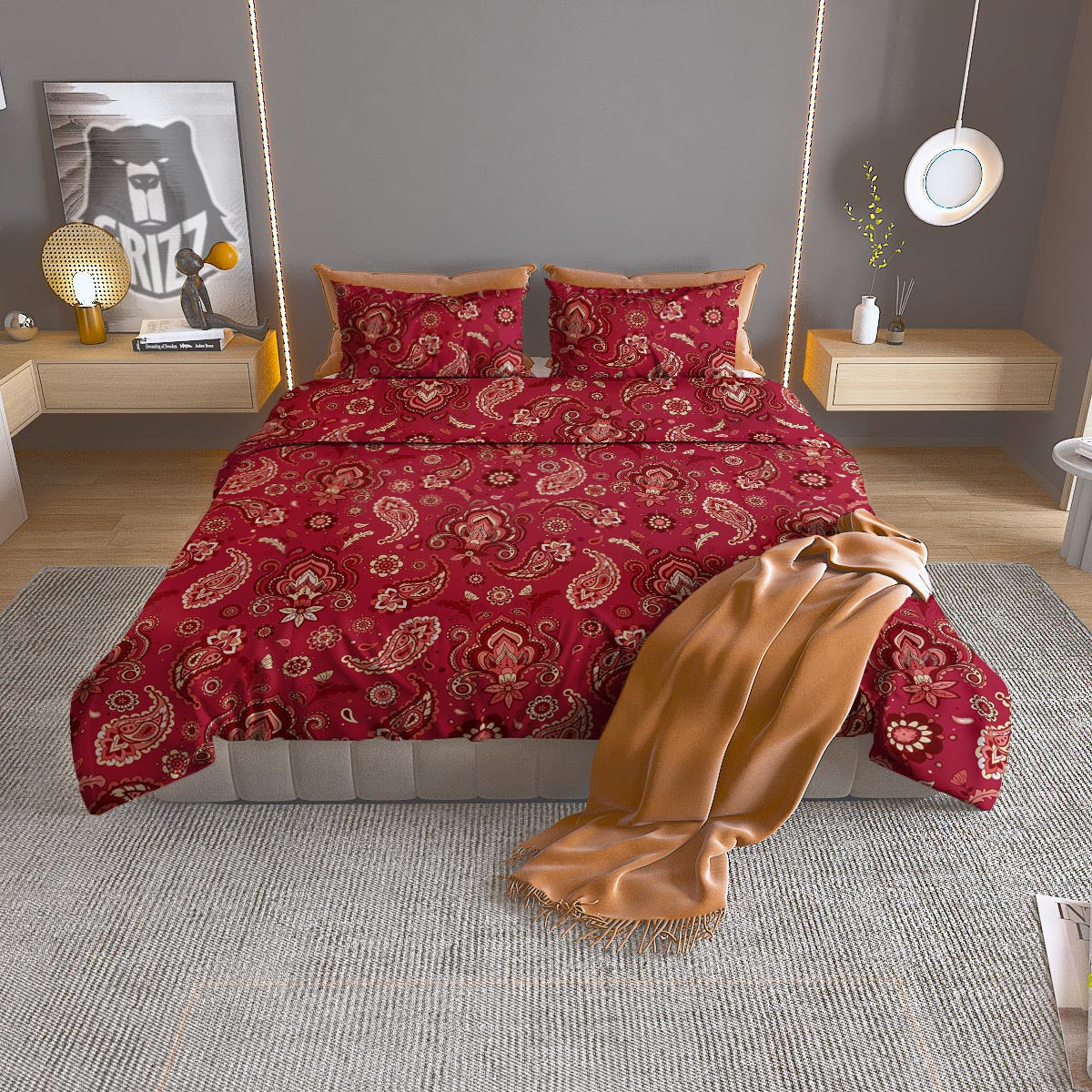Paisley Red Print Pattern Duvet Cover Bedding Set