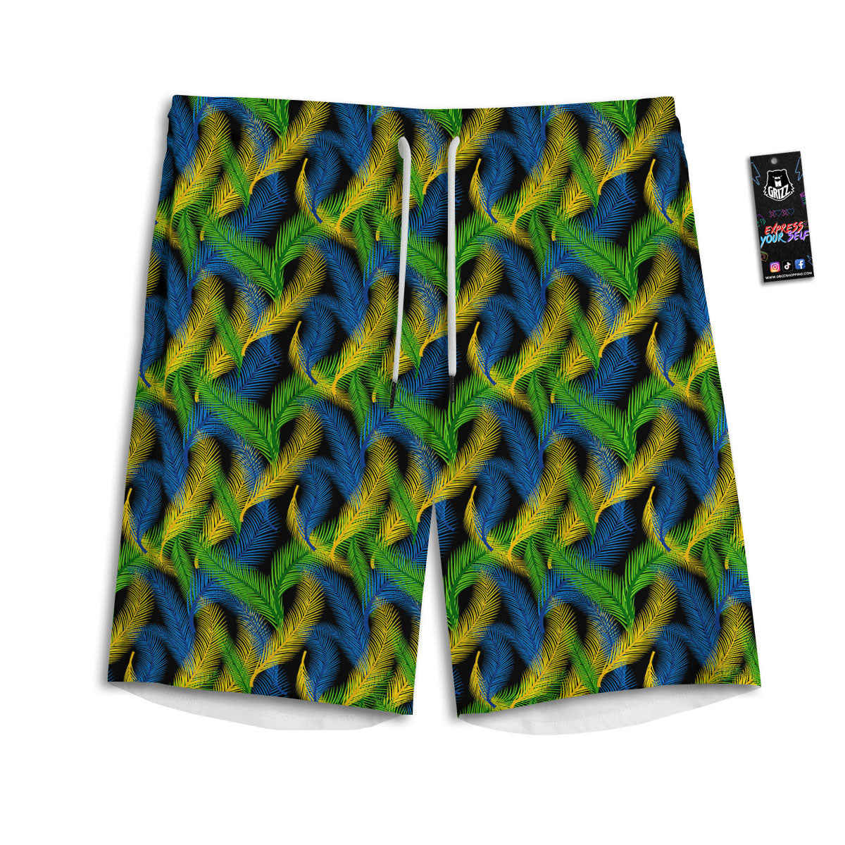 Palm Leaf Mardi Gras Print Pattern Men's Athletic Shorts