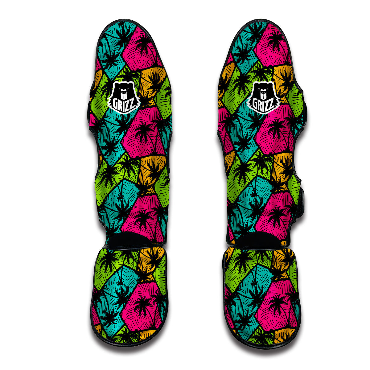 Palm Tree Beach Pattern Print Muay Thai Shin Guards