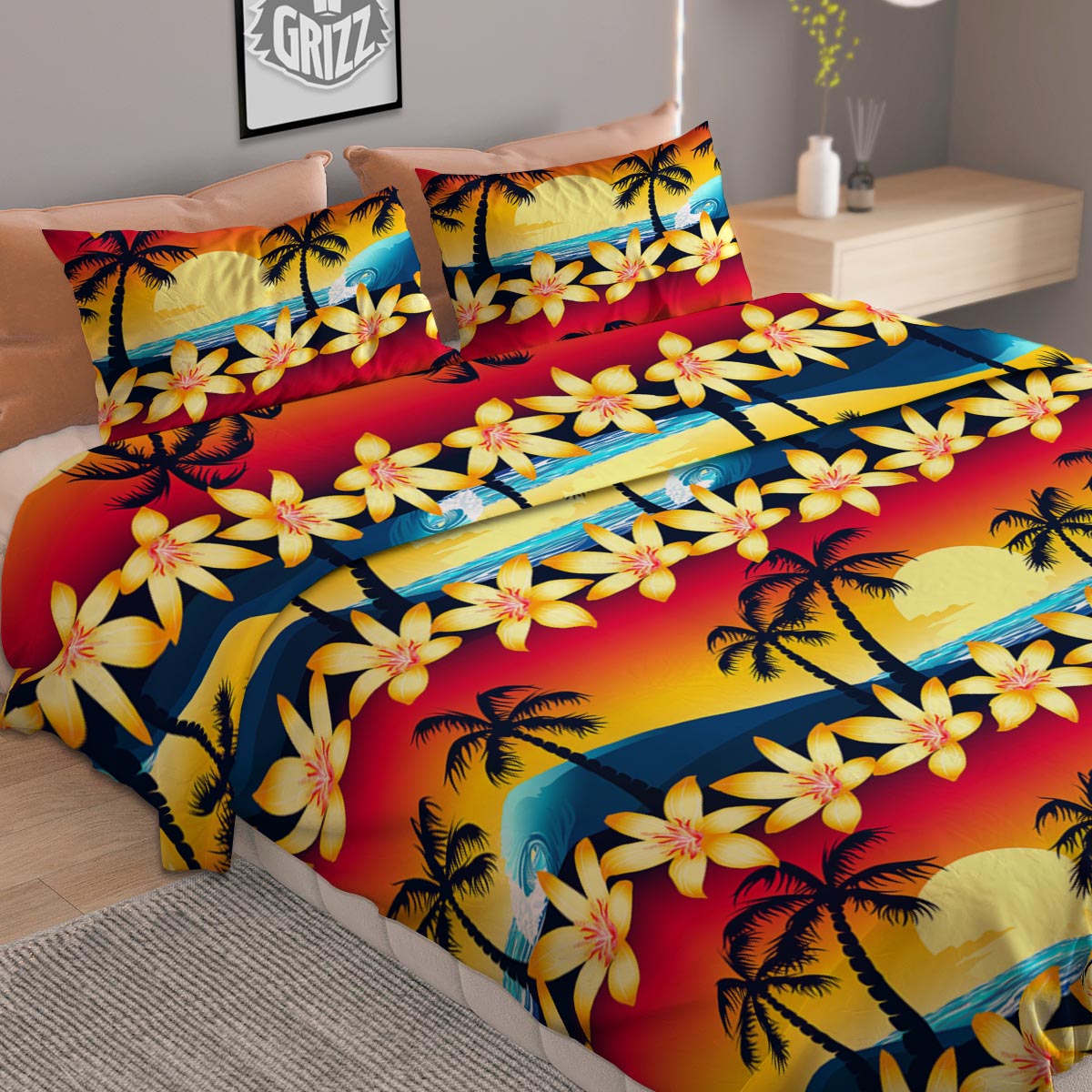Palm Tree Sunset Hibiscus Print Pattern Duvet Cover Bedding Set