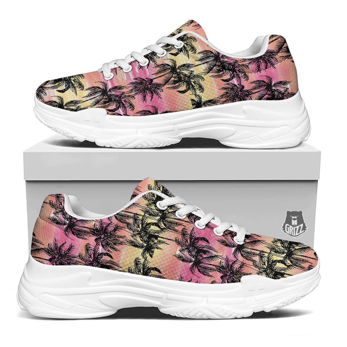 Looking for unique chunky shoes? Check out our Palm Tree Sunset Print Pattern White Chunky Shoes at Grizzshopping. Our chunky shoes are handcrafted to the highest quality standards that custom made for you