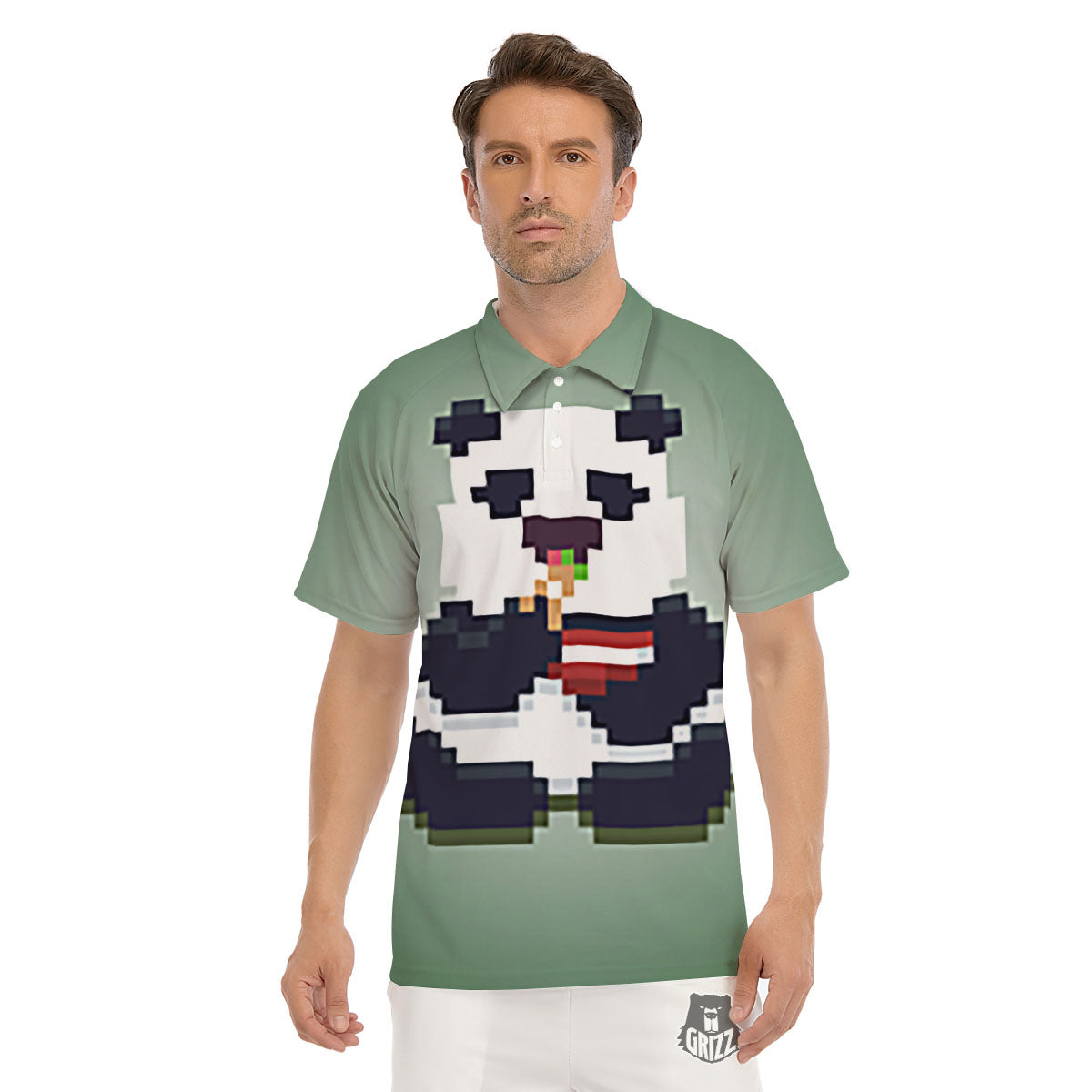 Panda 8-Bit Pixel Print Men's Golf Shirts