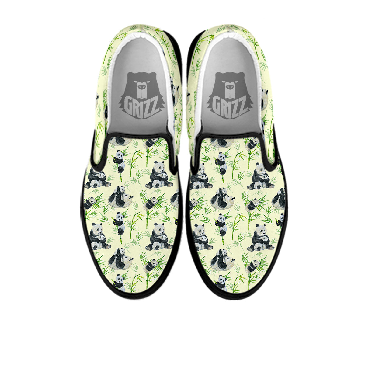 Panda Bamboo And Baby Print Pattern Black Slip On Shoes
