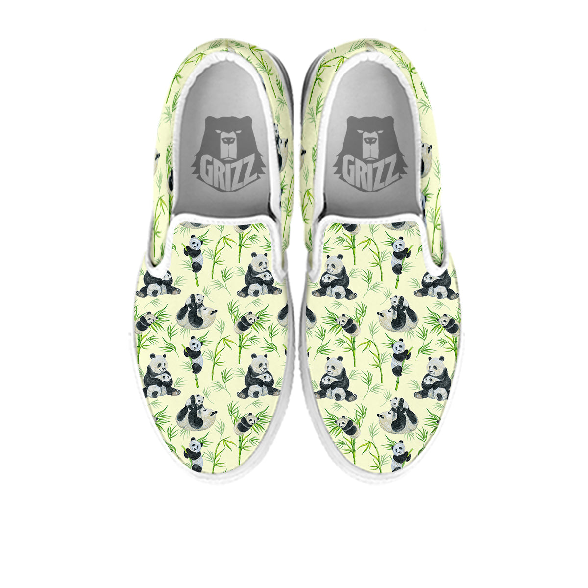 Panda Bamboo And Baby Print Pattern White Slip On Shoes