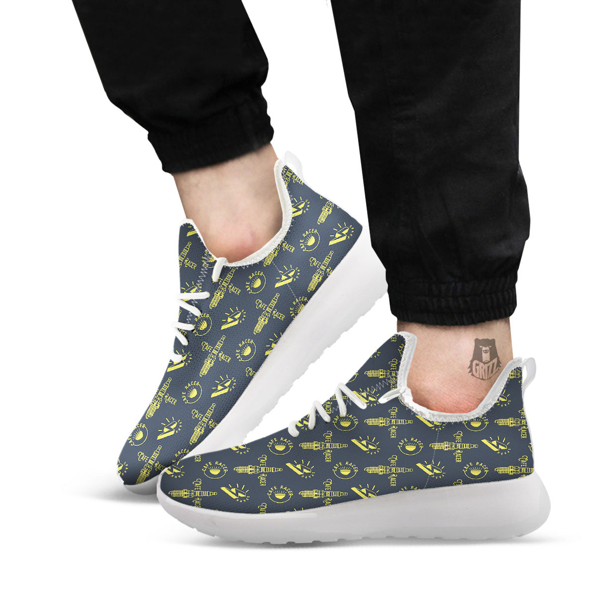 Parts Motorcycle Print Pattern White Athletic Shoes