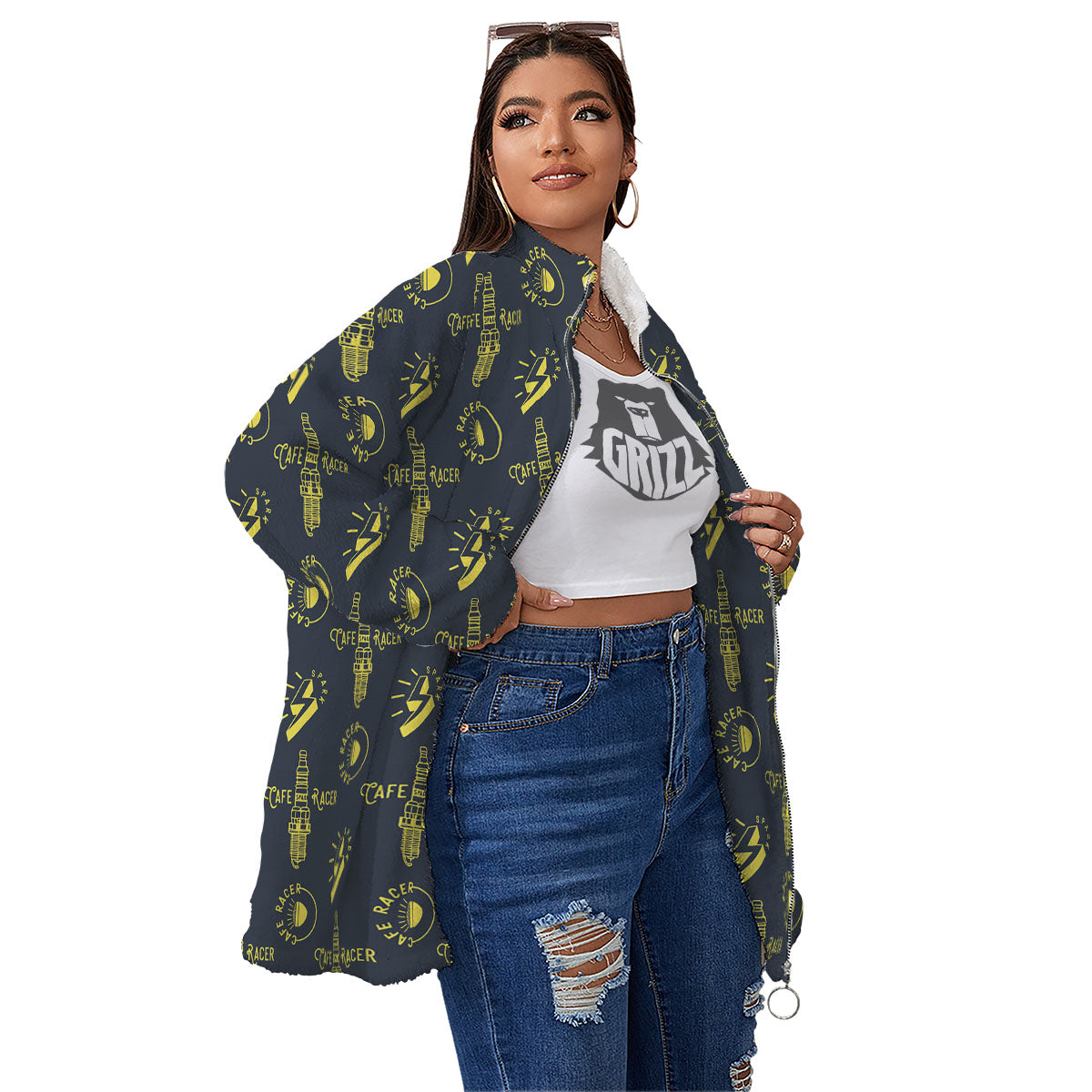 Parts Motorcycle Print Pattern Women's Sherpa Jacket