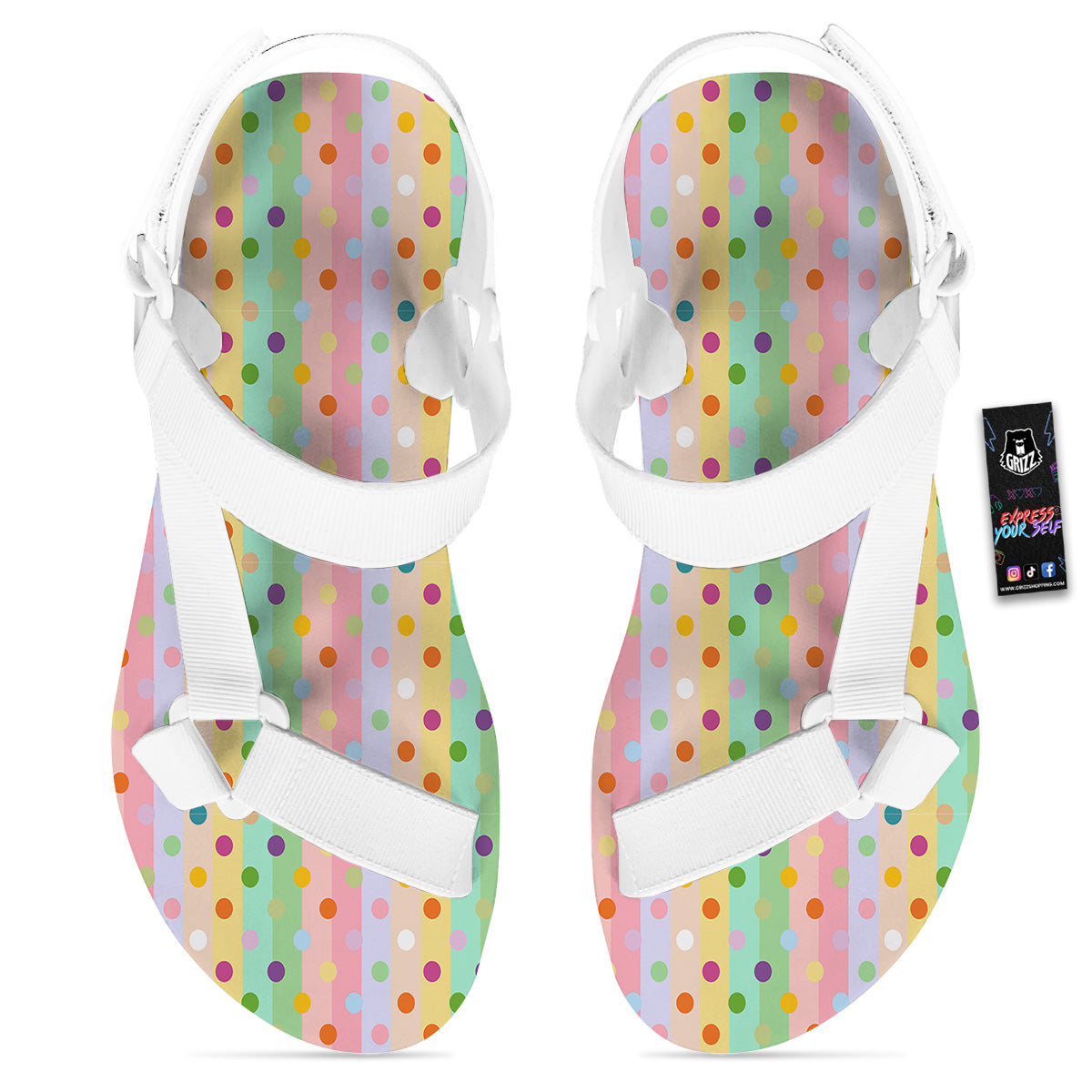 Pastel Polka Dots Print Pattern White Open Toe Sandals