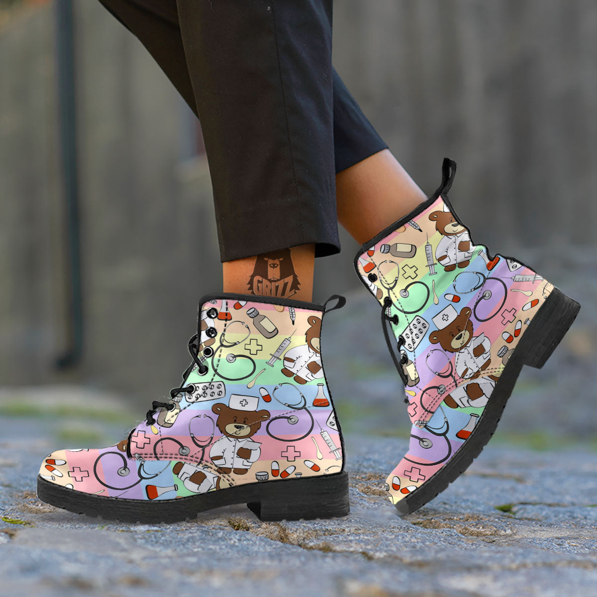 Looking for a unique Boots? Check out our Pastel Teddy Bear Nurse Leather Boots at Grizzshopping. Our Boots are handcrafted to the highest quality standards that custom made for you