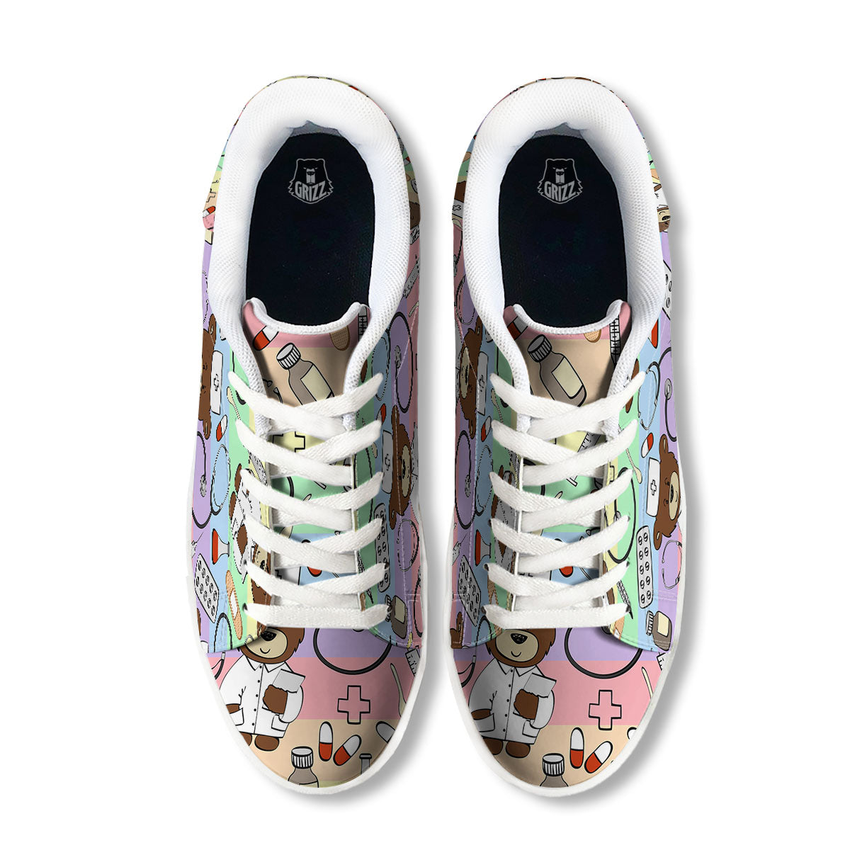 Pastel Teddy Bear Nurse White Low Top Sneakers
