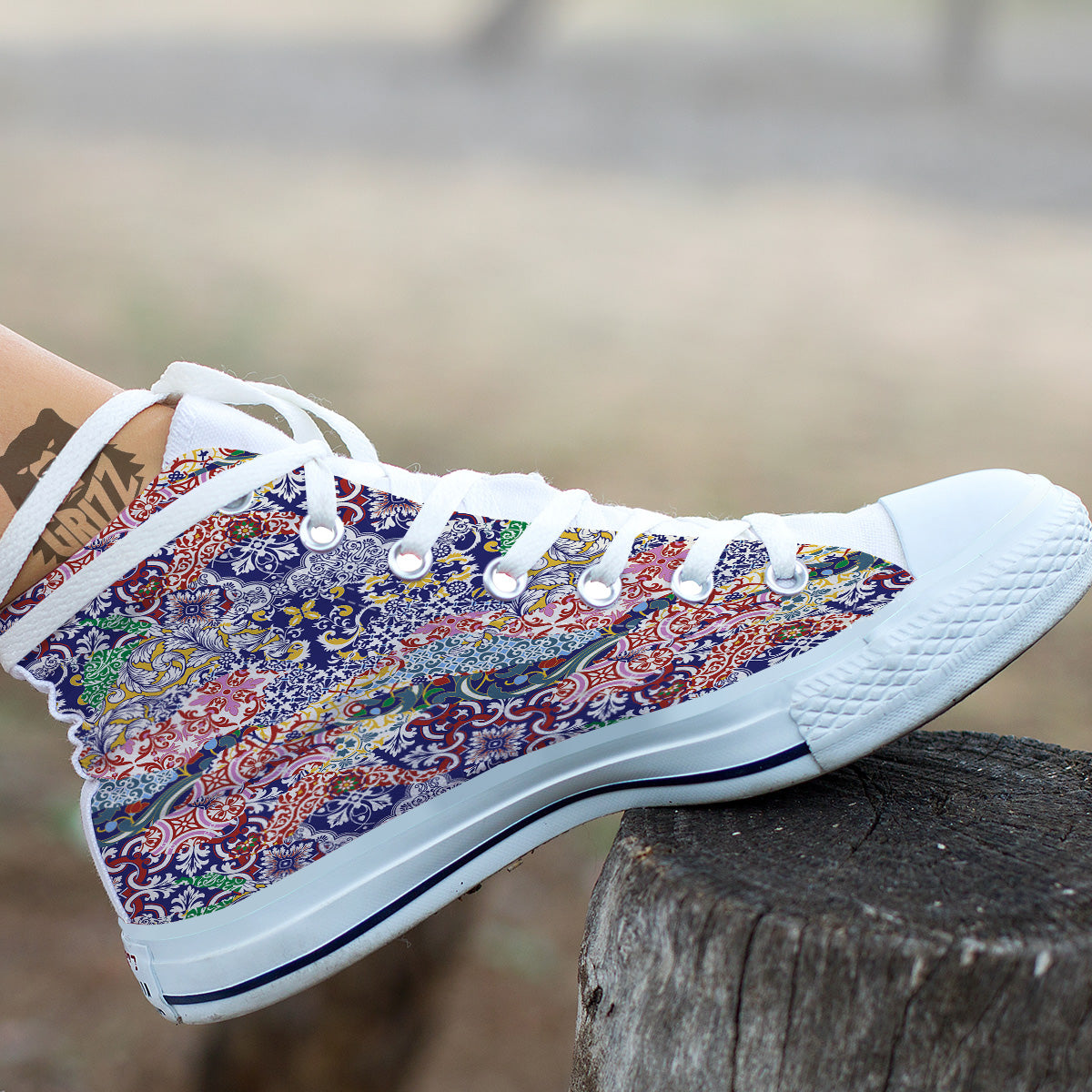 Patchwork Azulejos Tiles Print Pattern White High Top Shoes