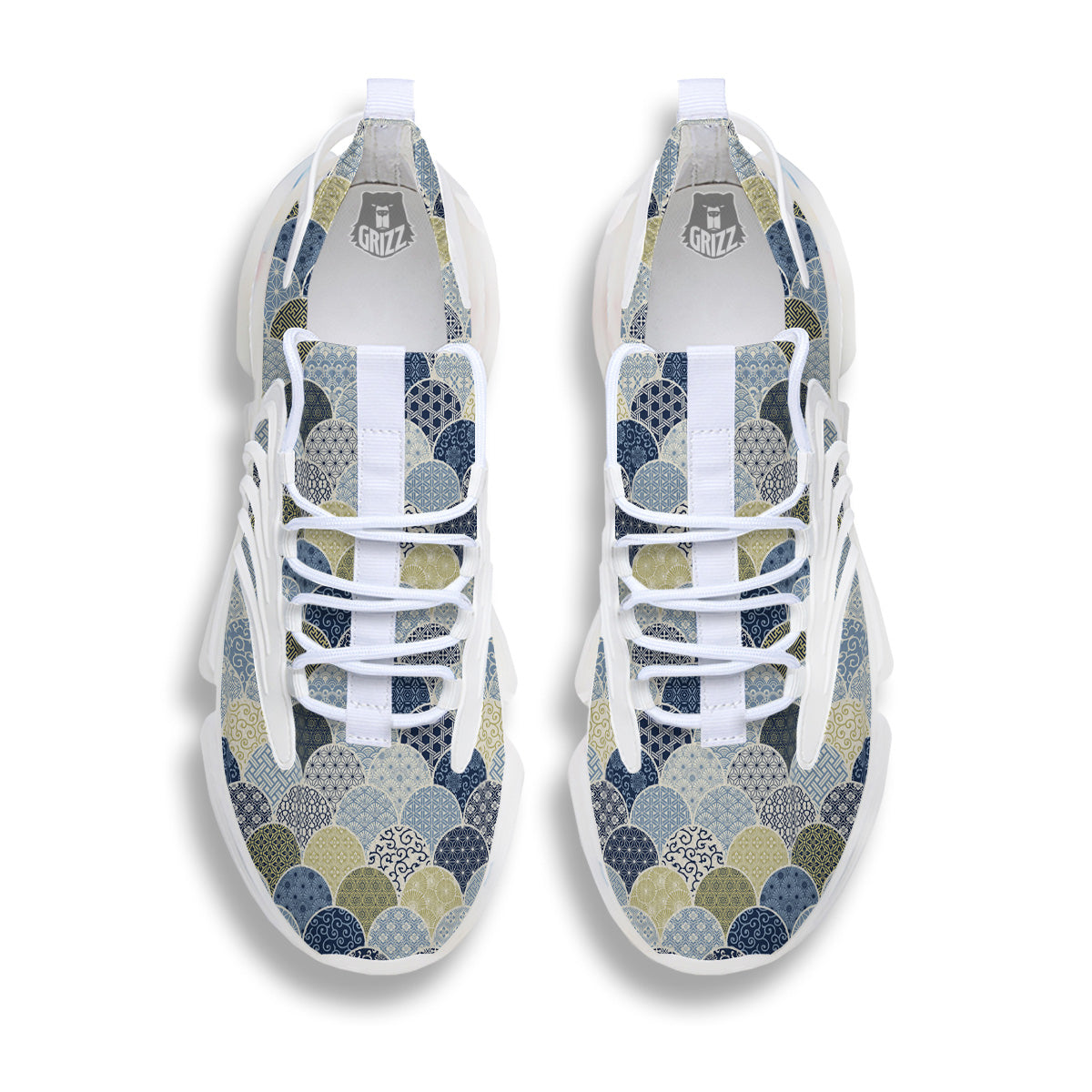 Patchwork Blue Traditional Japanese Print Pattern White Gym Shoes