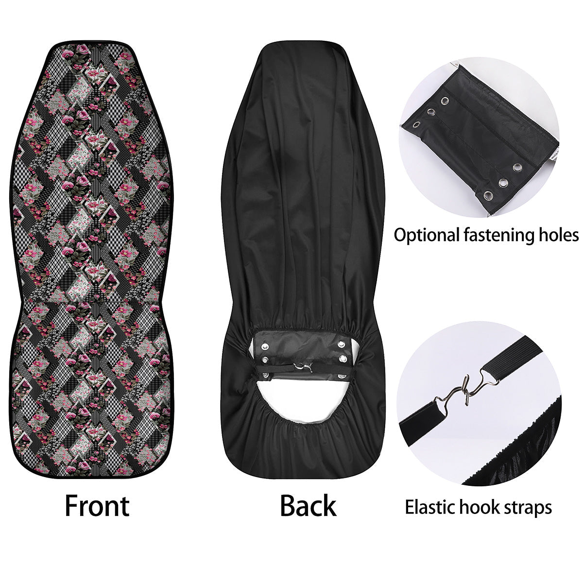 Looking for a unique car seat cover? Check out our Patchwork Floral Black Pink Print Pattern Car Seat Covers at Grizzshopping. Our car seat cover are handcrafted to the highest quality standards that custom made for you Constructed with high quality polyester micro-fiber fabric for maximum durability and comfort.