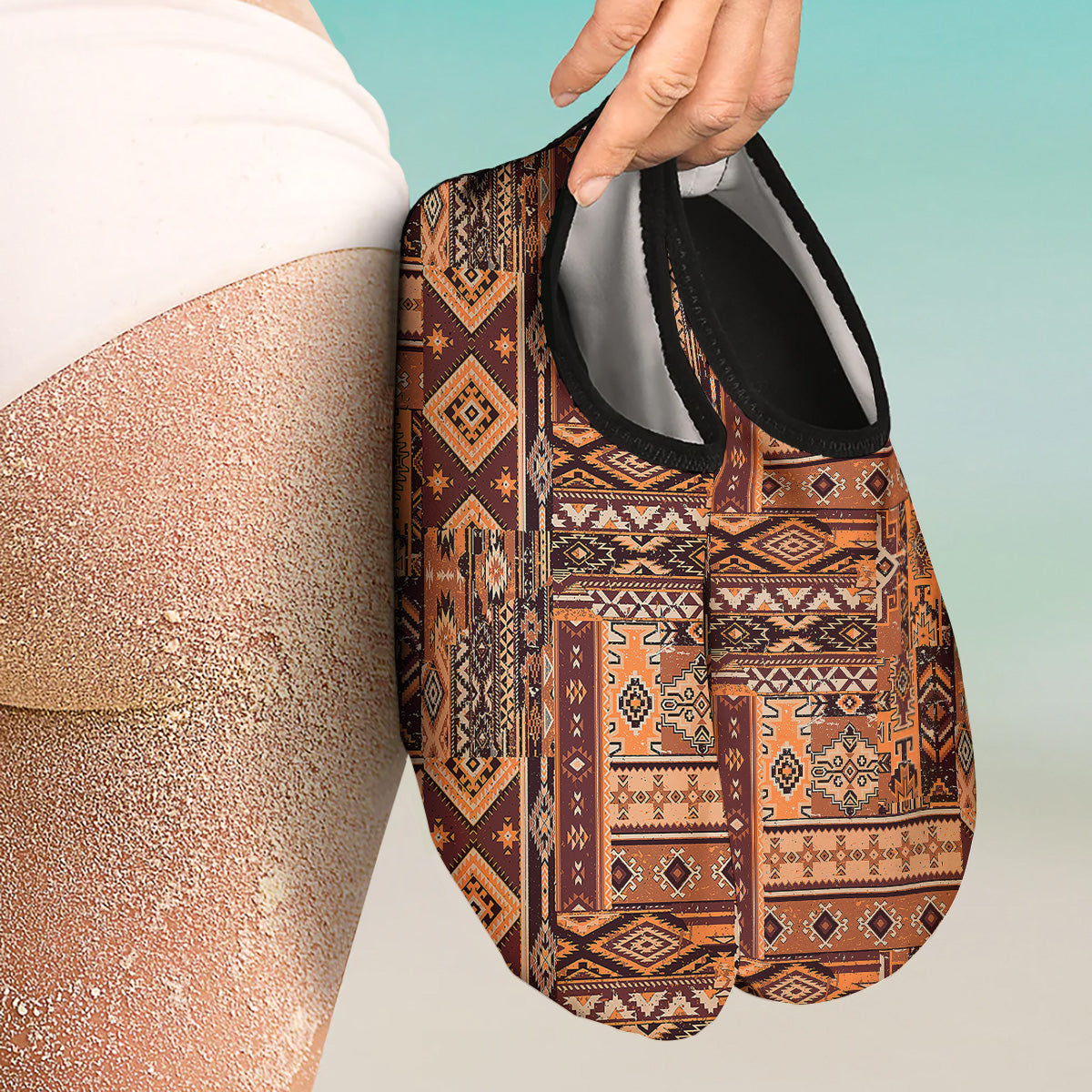 Patchwork Grunge Native American Print Pattern Water Shoes