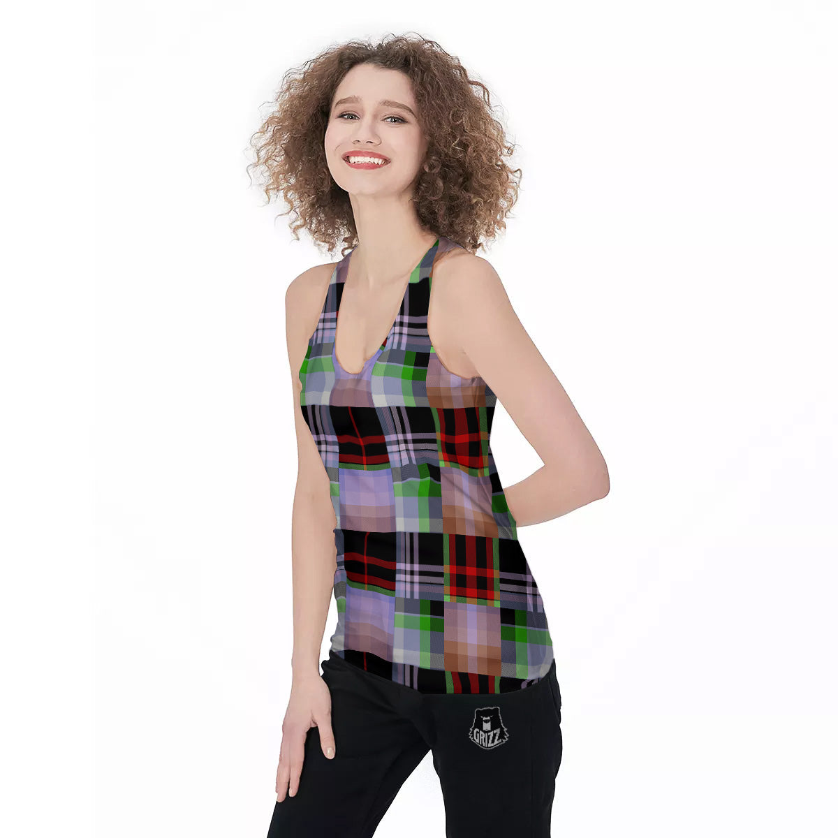Patchwork Plaid Madras Print Pattern Women's Racerback Tank Top