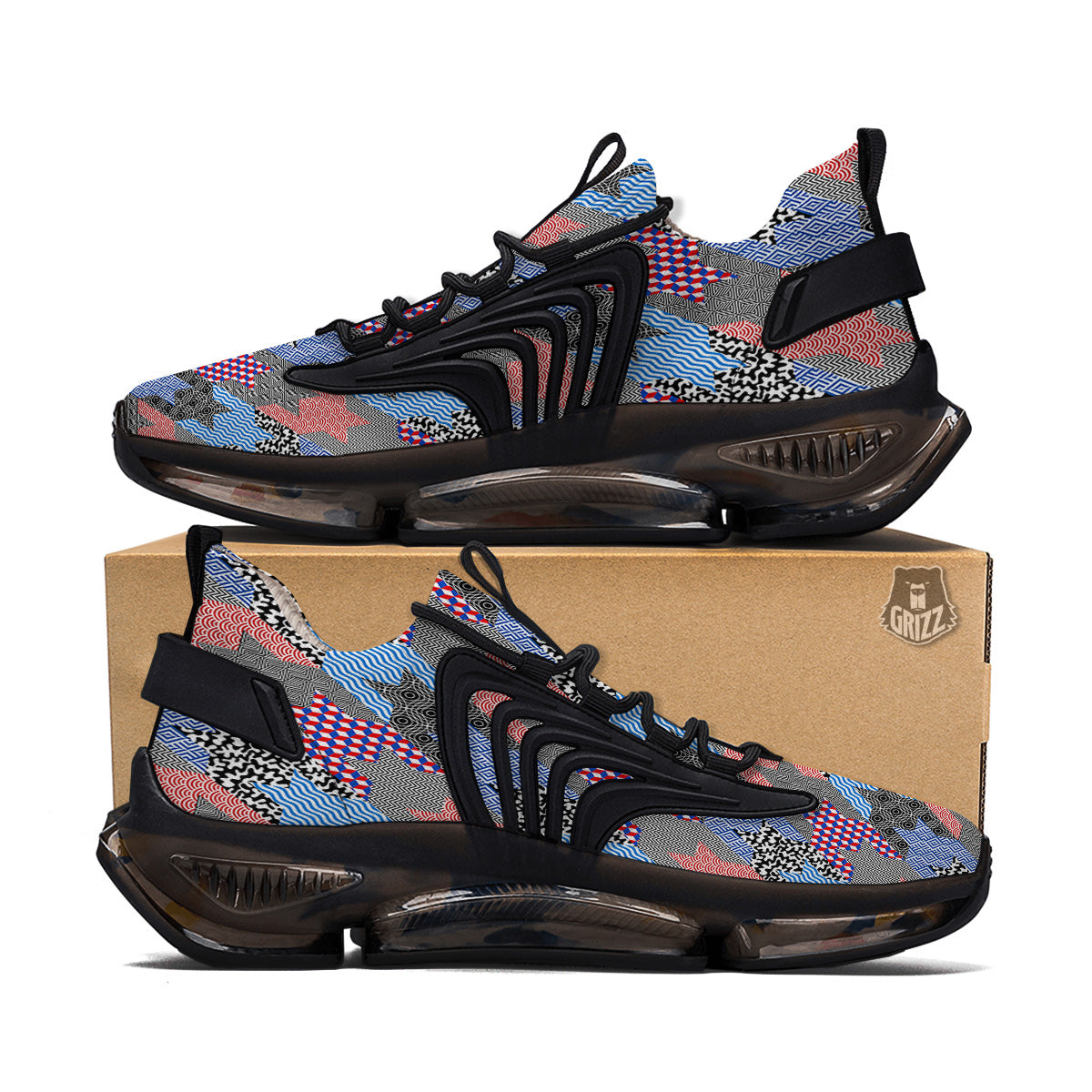 Patchwork Style And Classic Houndstooth Print Pattern Black Gym Shoes