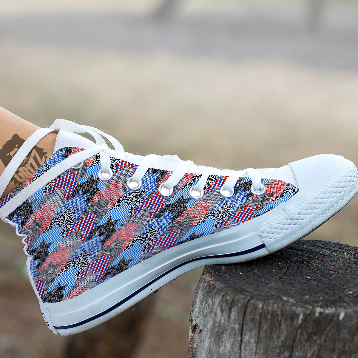 Looking for a unique shoes? Check out our Patchwork Style And Classic Houndstooth Print Pattern White High Top Shoes at Grizzshopping. Our shoes are handcrafted to the highest quality standards that custom made for you