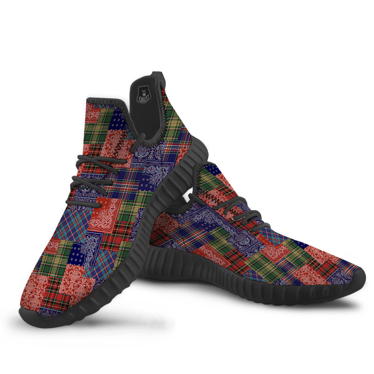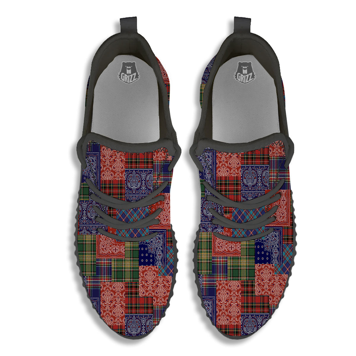 Patchwork Tartan And Bandana Print Pattern Black Walking Shoes