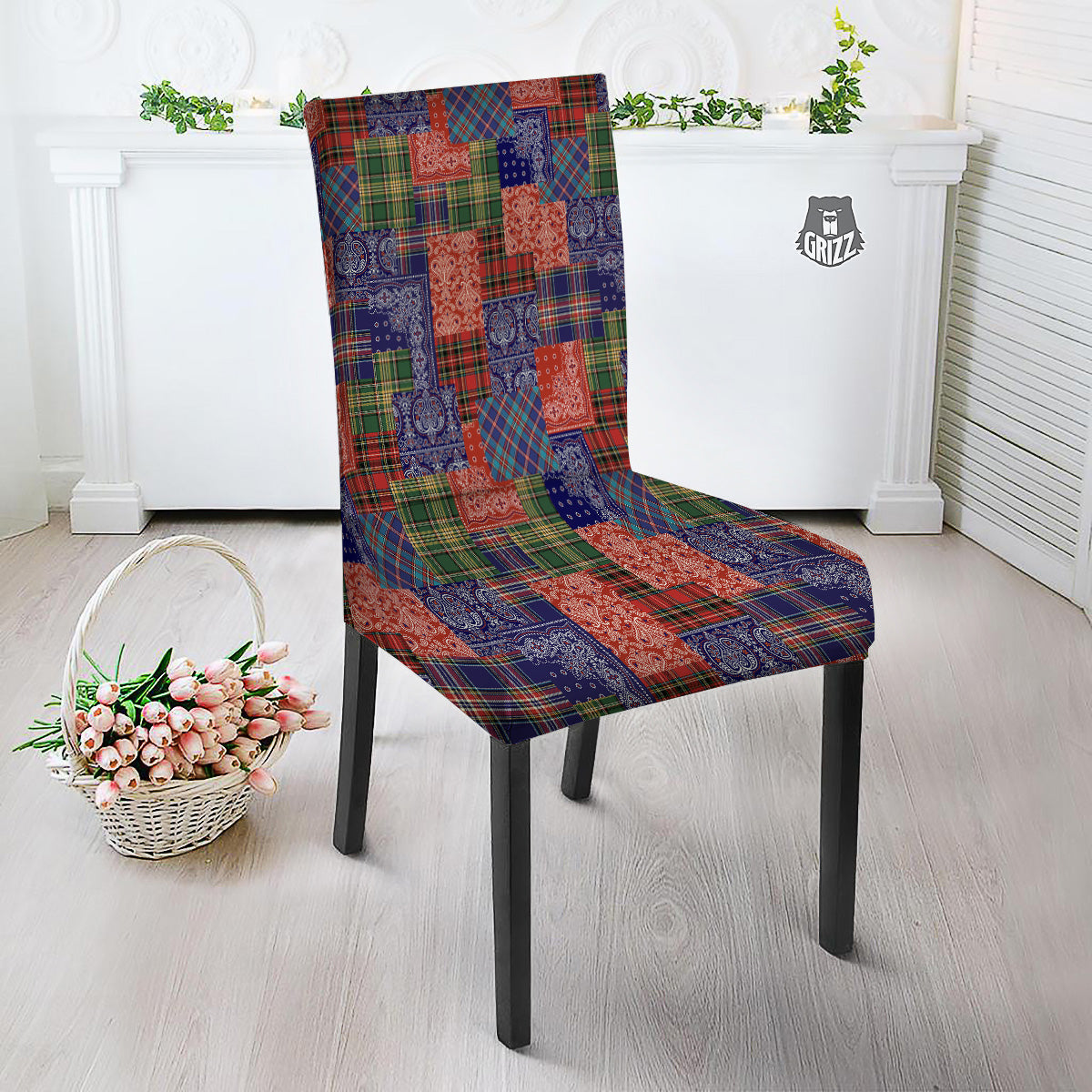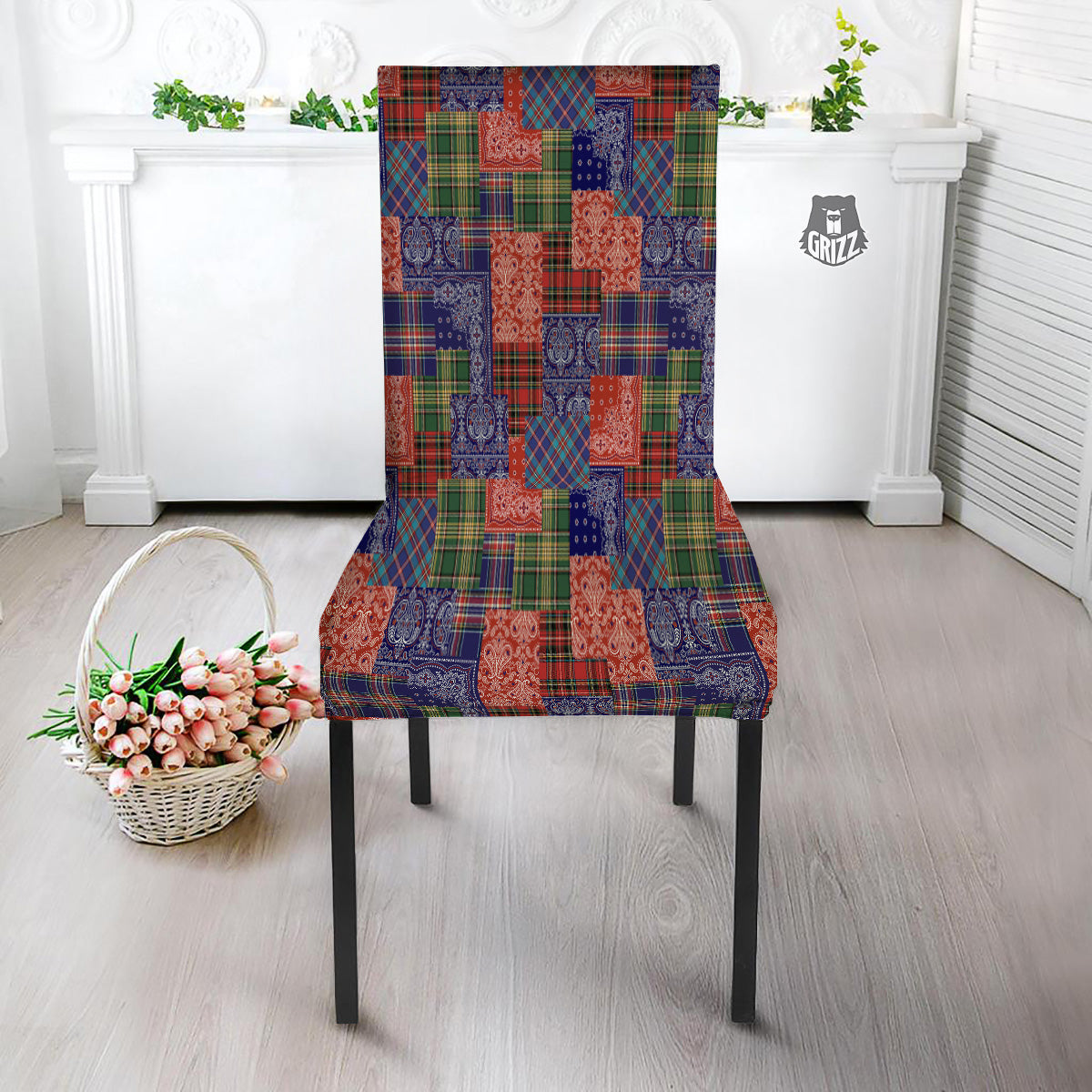 Patchwork Tartan And Bandana Print Pattern Dining Chair Slipcover