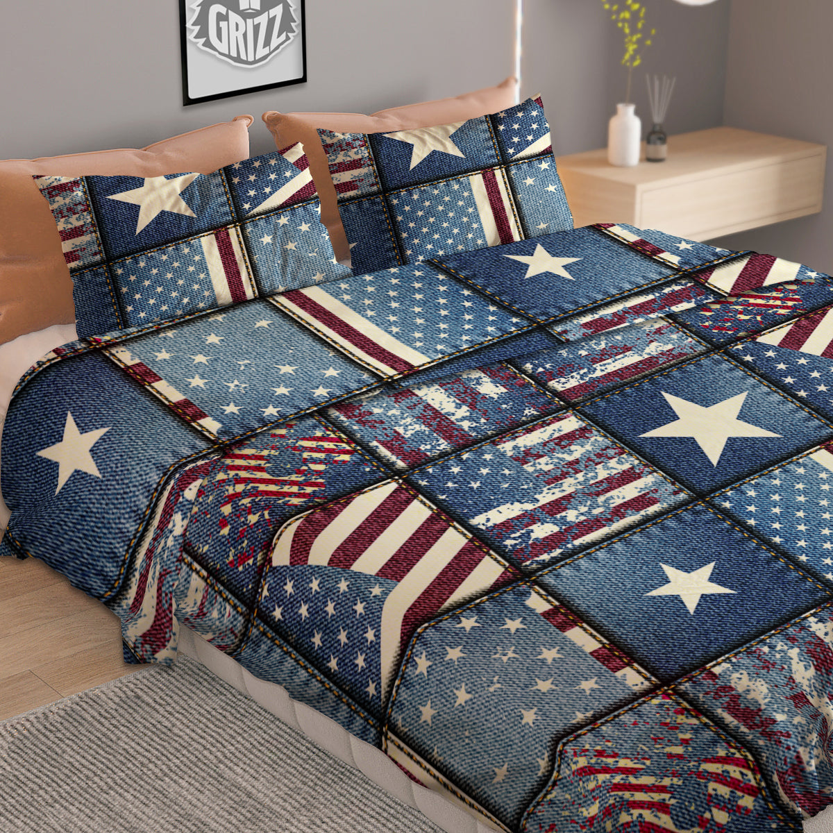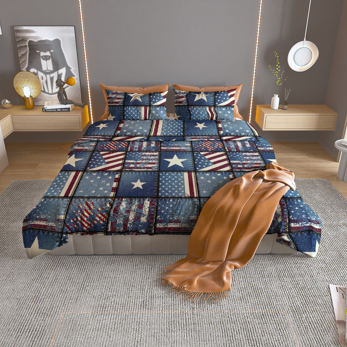 Patchwork USA Denim Print Pattern Duvet Cover Bedding Set