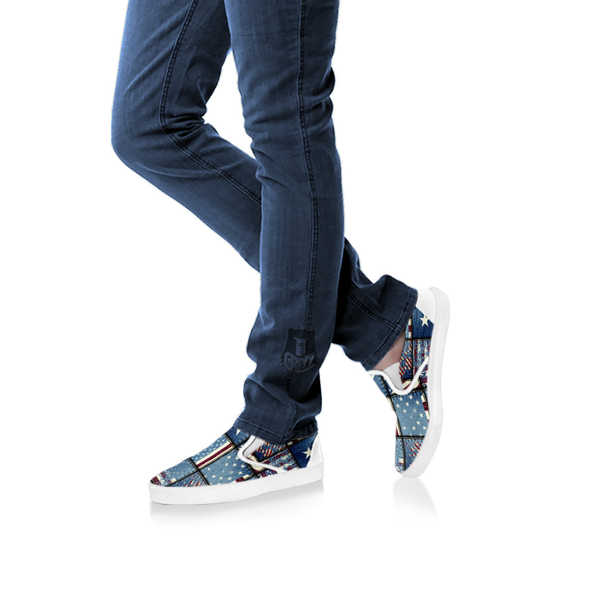 Patchwork USA Denim Print Pattern White Slip On Shoes