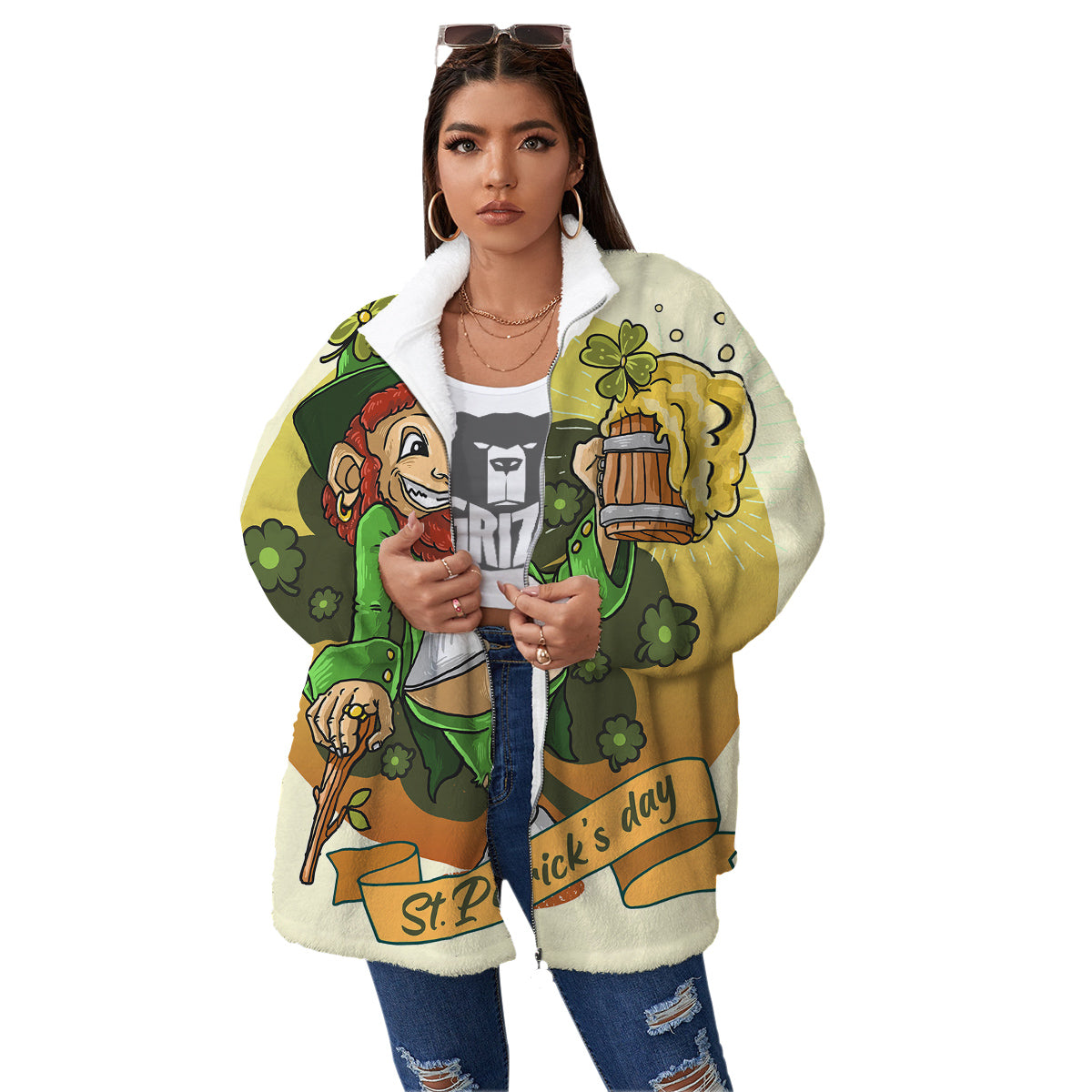Looking for a unique Jacket? Check out our Patrick's Day Cute Shamrock Saint Print Women's Sherpa Jacket at Grizzshopping. Our jacket are handcrafted to the highest quality standards that custom made for you