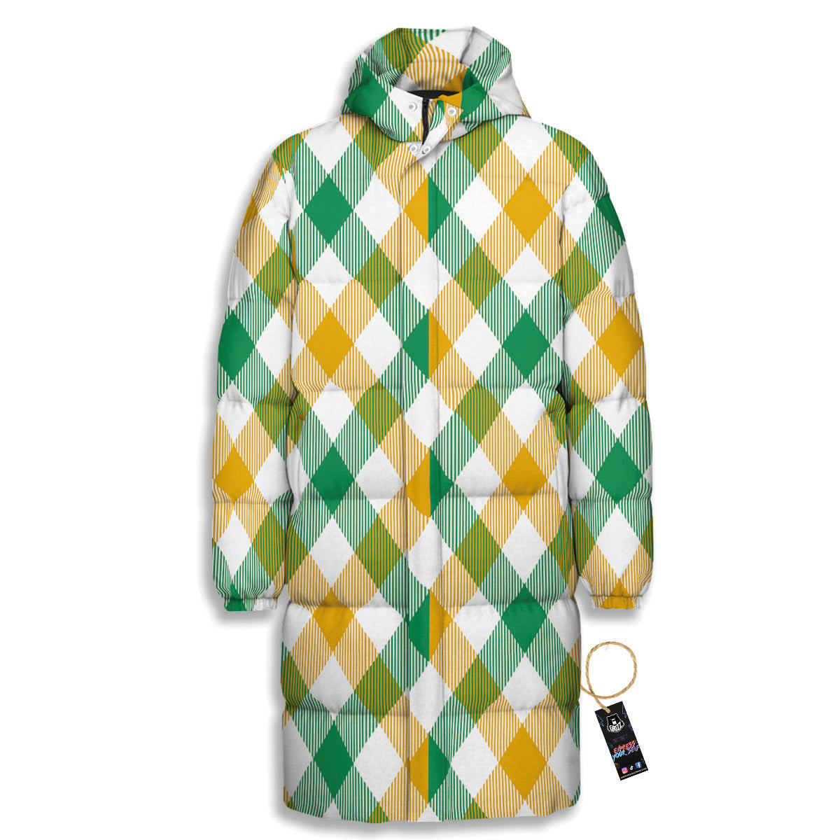 Patrick's Day Irish Plaid Print Long Down Jacket