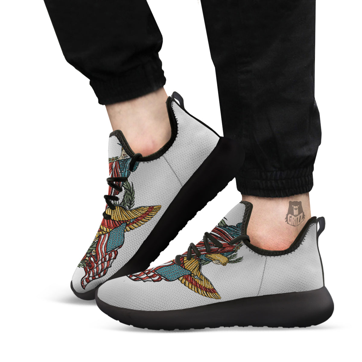 Patriotic Art Statue Of Liberty Print Black Athletic Shoes
