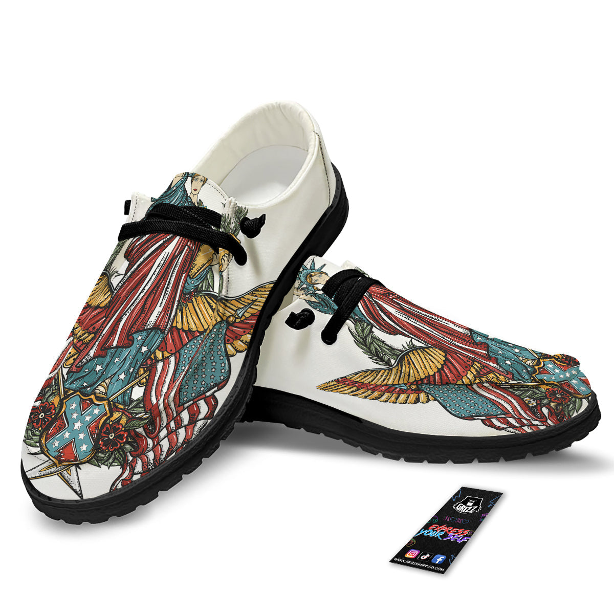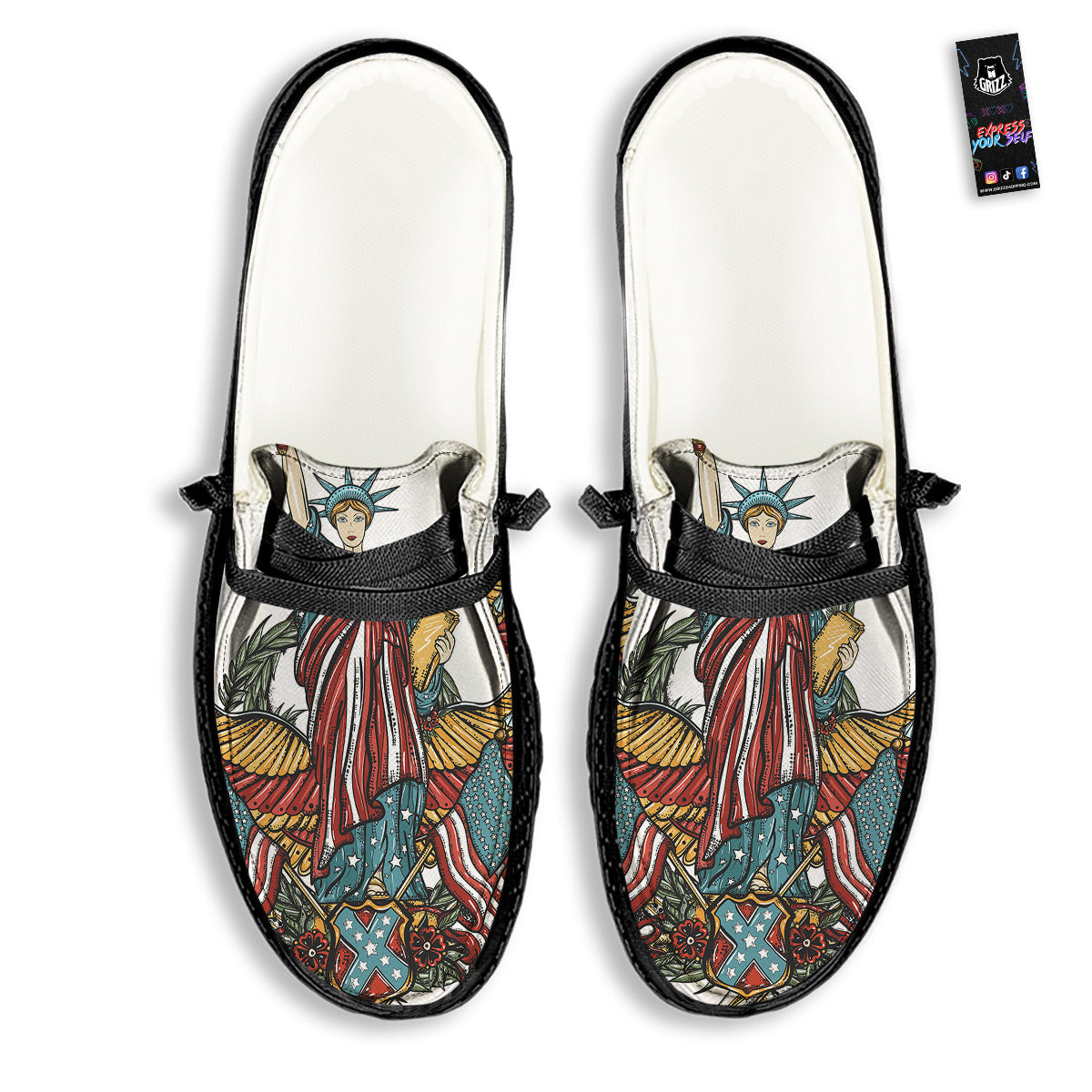 Patriotic Art Statue Of Liberty Print Black Loafers