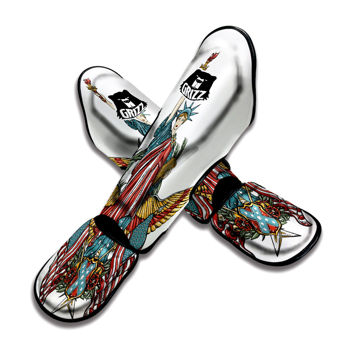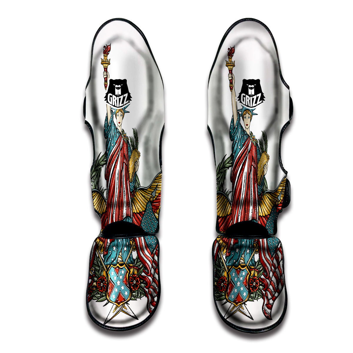 Patriotic Art Statue Of Liberty Print Muay Thai Shin Guards