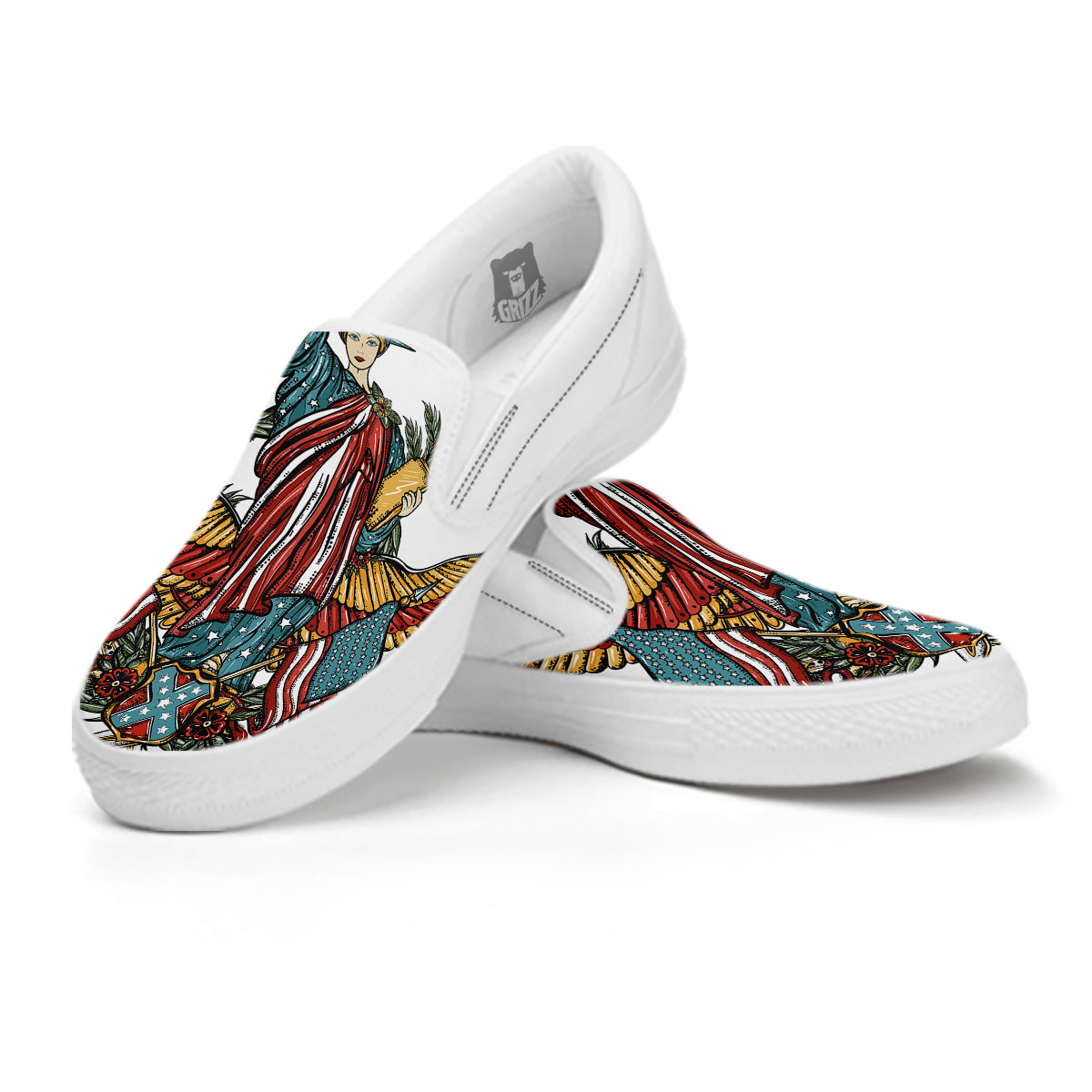 Looking for a unique Slip On Sneakers? Check out our Patriotic Art Statue Of Liberty Print White Slip On Shoes at Grizzshopping. Our Slip On Sneakers are handcrafted to the highest quality standards that custom made for you