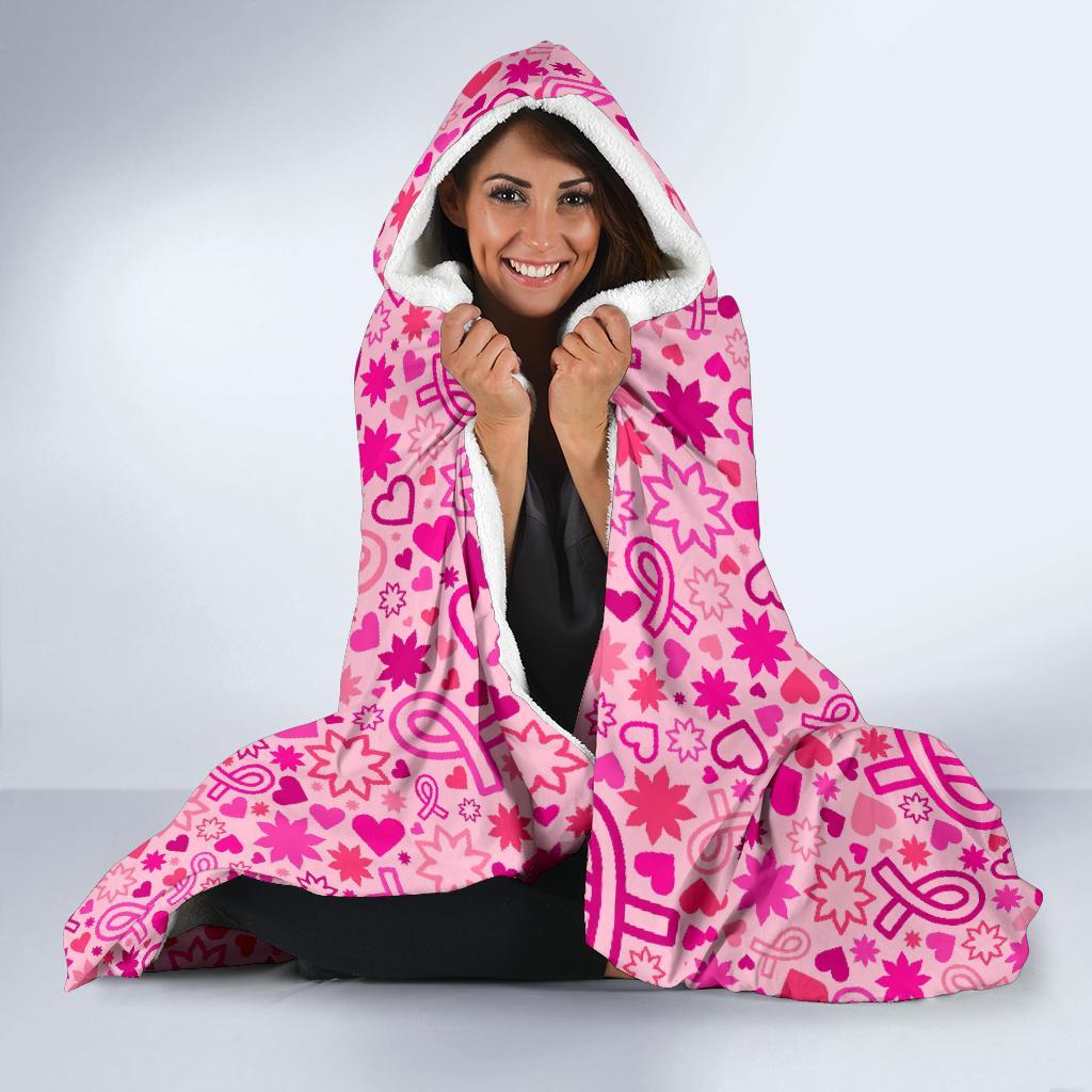 Pattern Print Breast Cancer Awareness Pink Ribbon Hooded Blanket