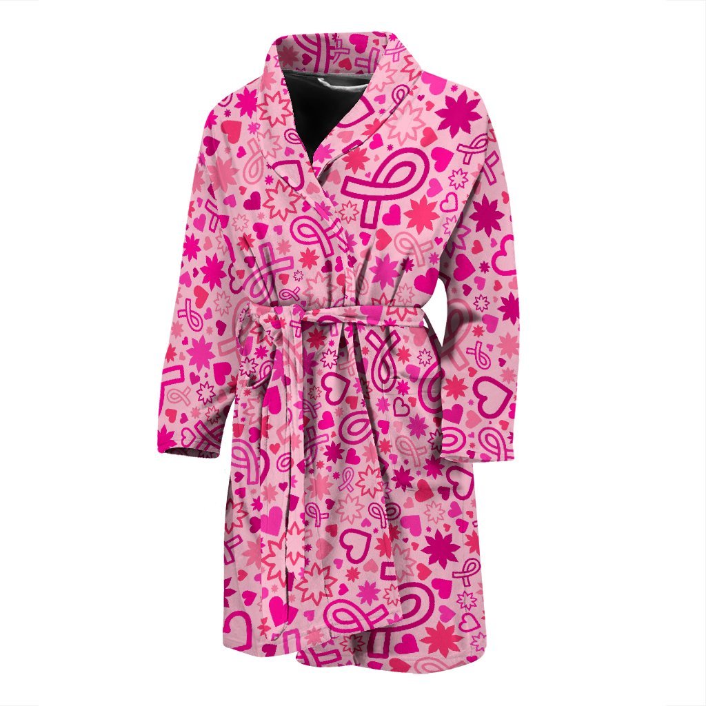 Pattern Print Breast Cancer Awareness Pink Ribbon Men Long Robe
