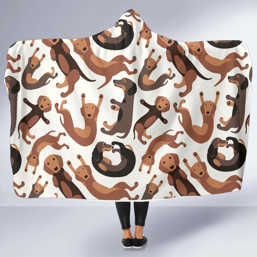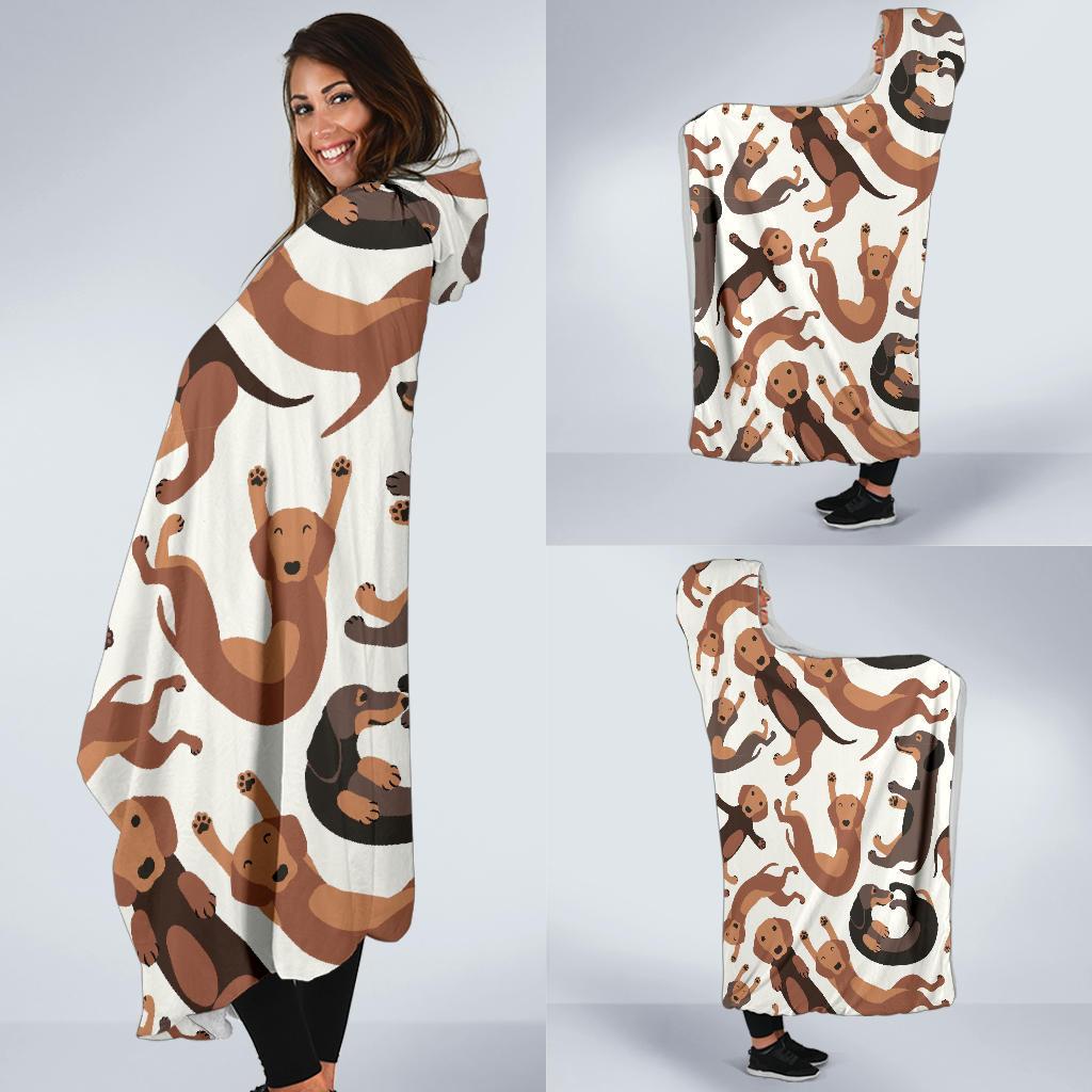 Pattern Print Dachshund Wiener Dog Hooded Blanket