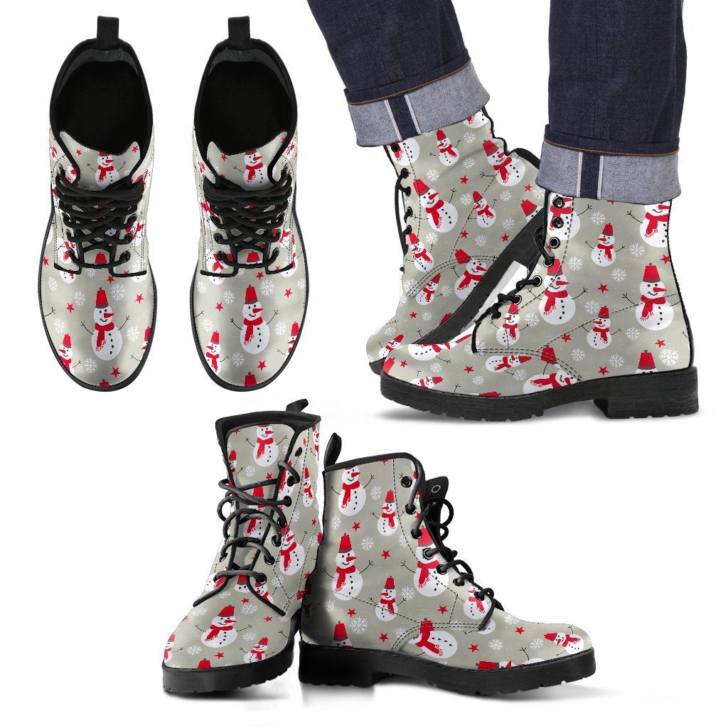 Pattern Print Snowflake Snowman Men Women Leather Boots