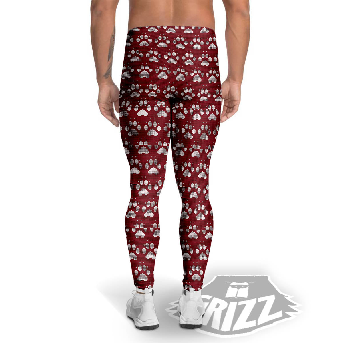 Paw Knitted Christmas Print Pattern Men's Leggings