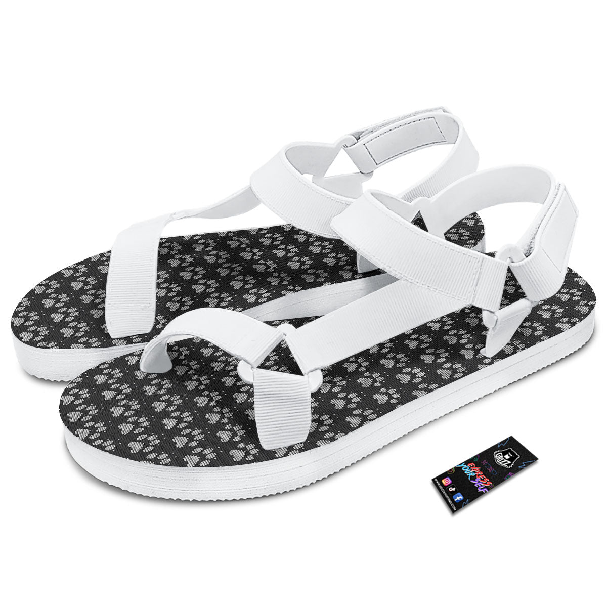Paw Knitted White And Grey Print Pattern White Open Toe Sandals