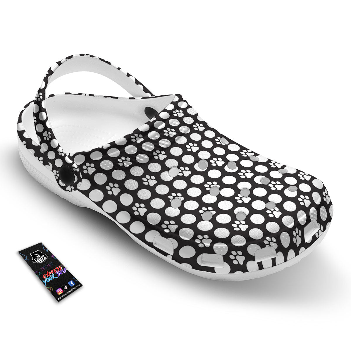 Looking for unique clog? Check out our Paw Polka Dot White And Black And Print Clog at Grizzshopping. Our clog are handcrafted to the highest quality standards and custom-made for you