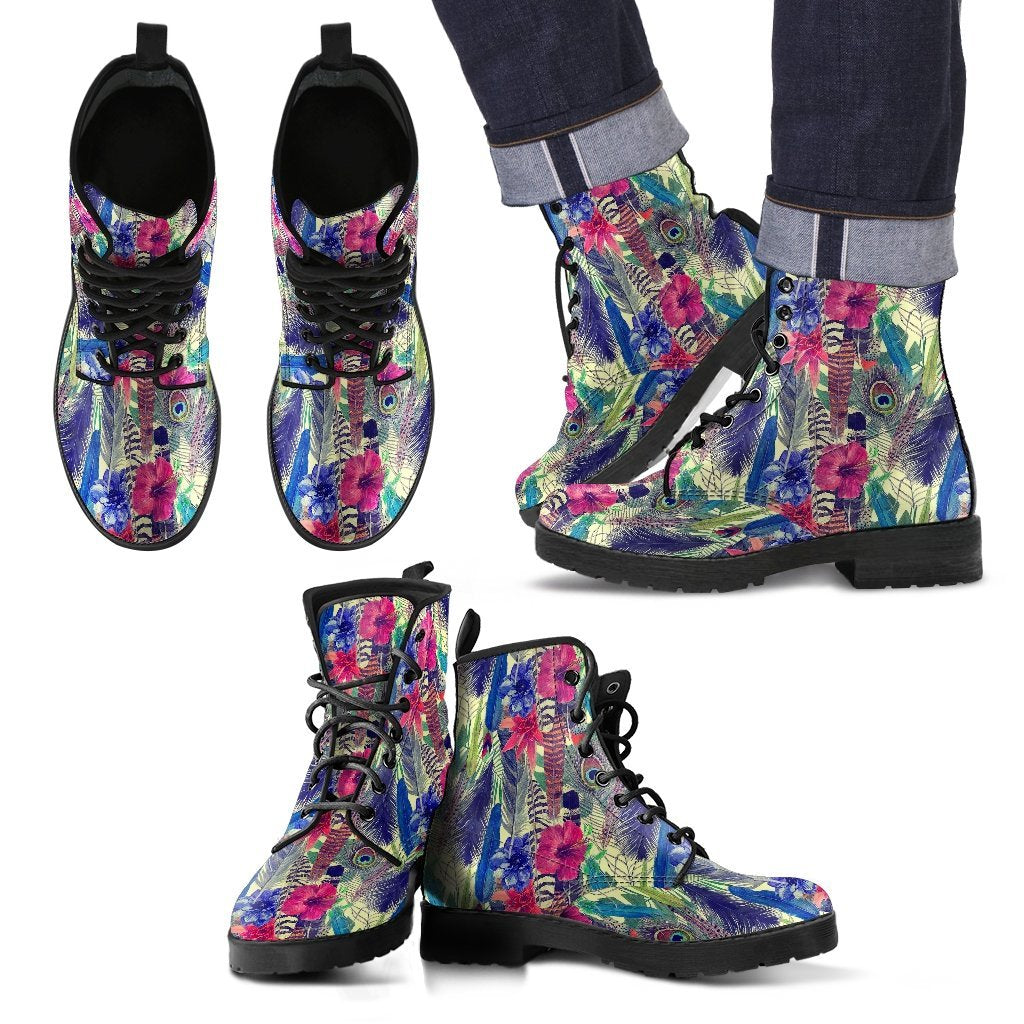 Looking for a unique unisex boot? Check out our Peacock Feather Floral Pattern Print Men Women Leather Boots at Grizzshopping. Our unisex boot are handcrafted to the highest quality standards that custom made for you