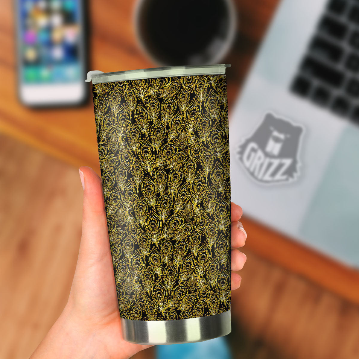 Looking for unique tumbler? Check out our Peacock Feather Gold And Black Print Tumbler at Grizzshopping. Our tumbler are handcrafted to the highest quality standards and custom-made for you