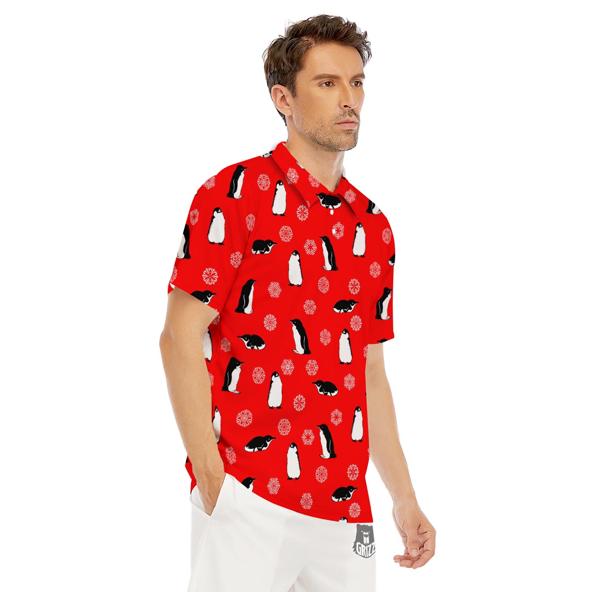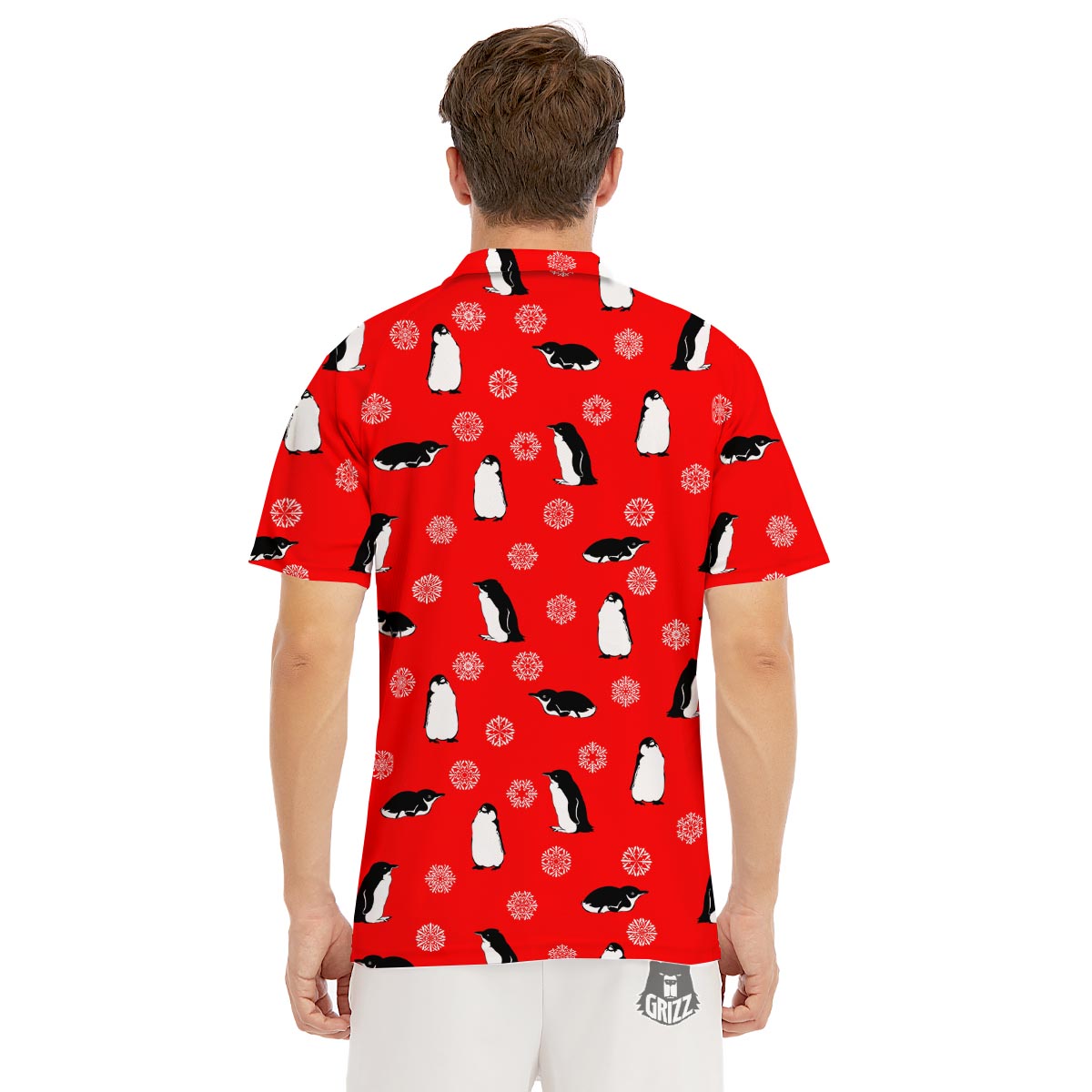 Penguin Red Snow Print Pattern Men's Golf Shirts