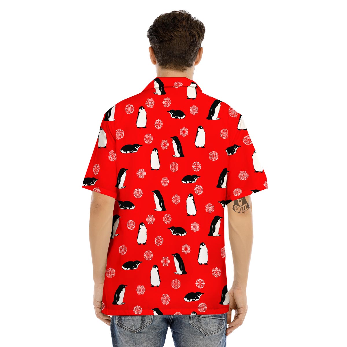 Penguin Red Snow Print Pattern Men's Hawaiian Shirt